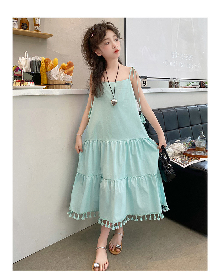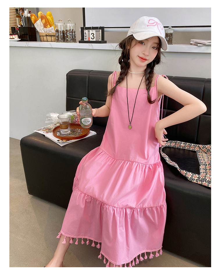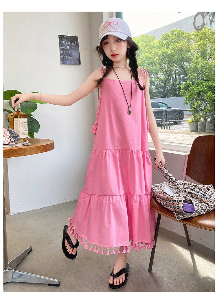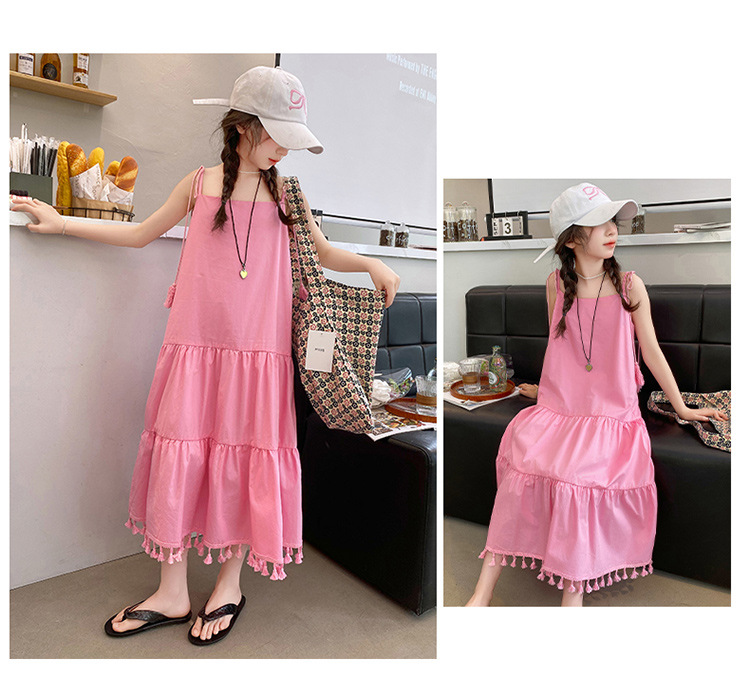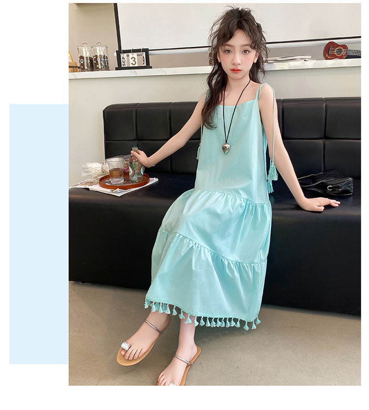 소녀 여름 원피스 원피스 2024 여름 새 스타일 소녀 슬립 스커트 큰 키즈 한국 스타일 서양식 민소매 면 원피스