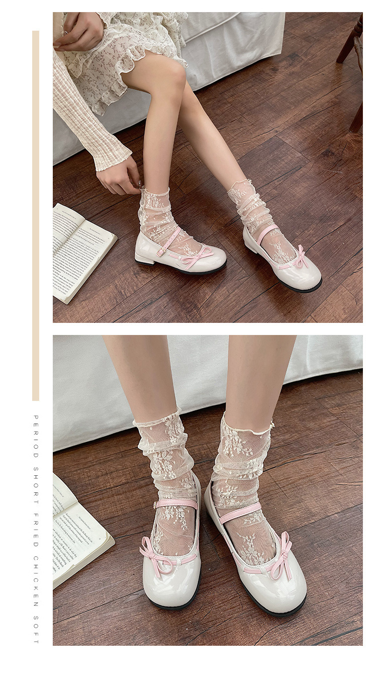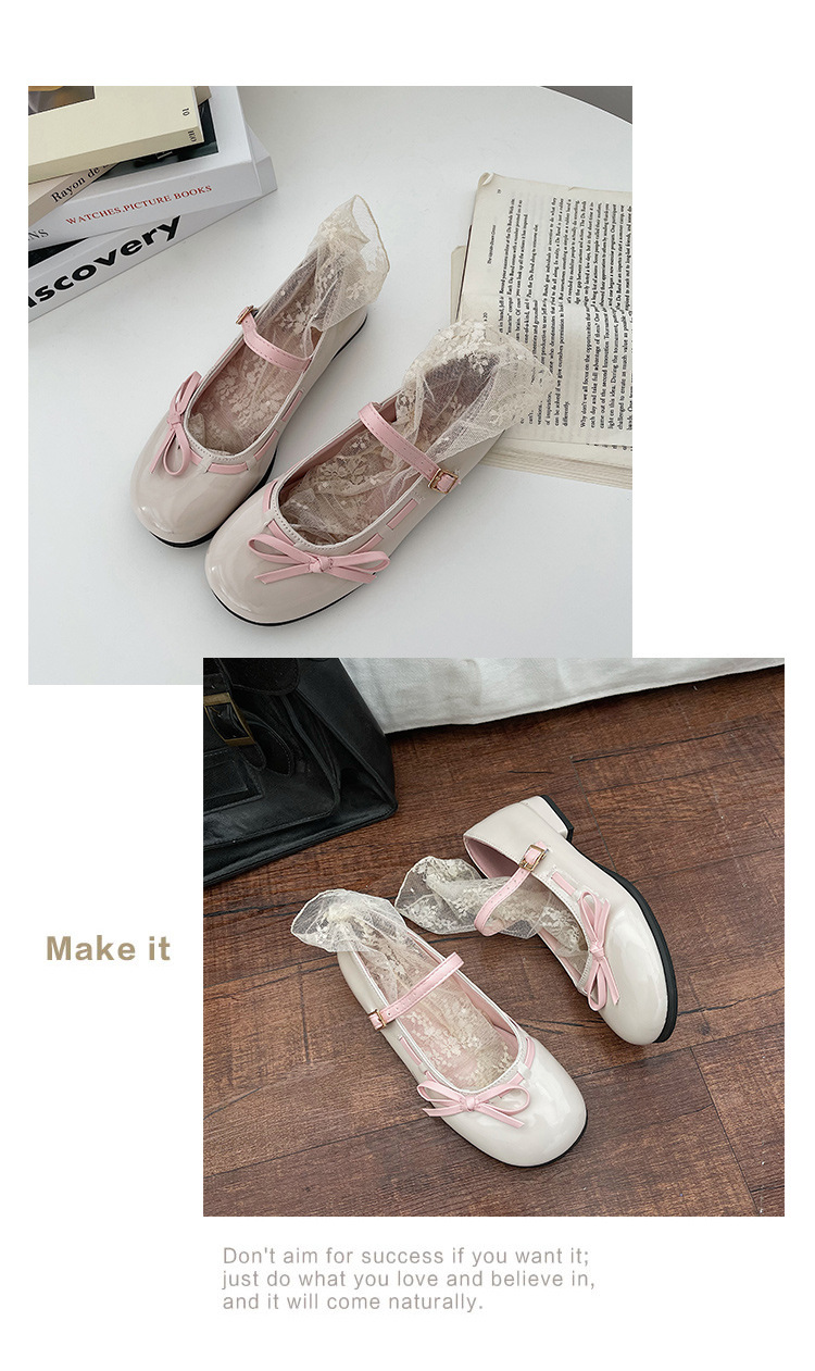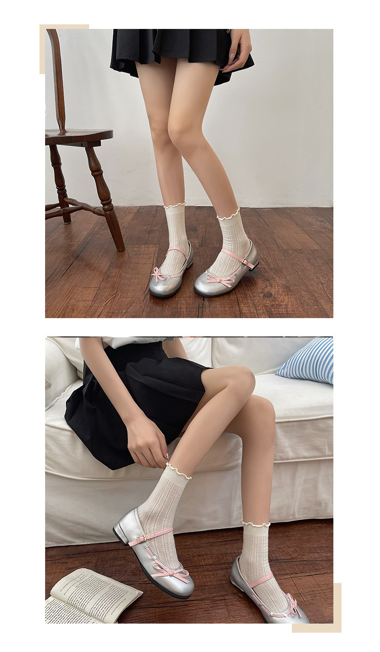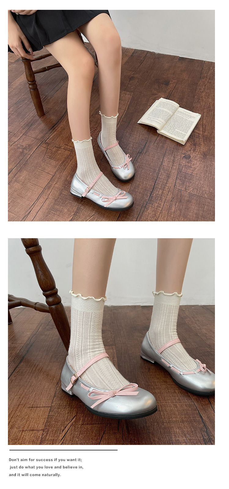 둥근 발가락 활 두꺼운 밑바닥 메리 제인 가죽 신발 여성의 여름 2024 새로운 프랑스 얕은 입 실버 신발