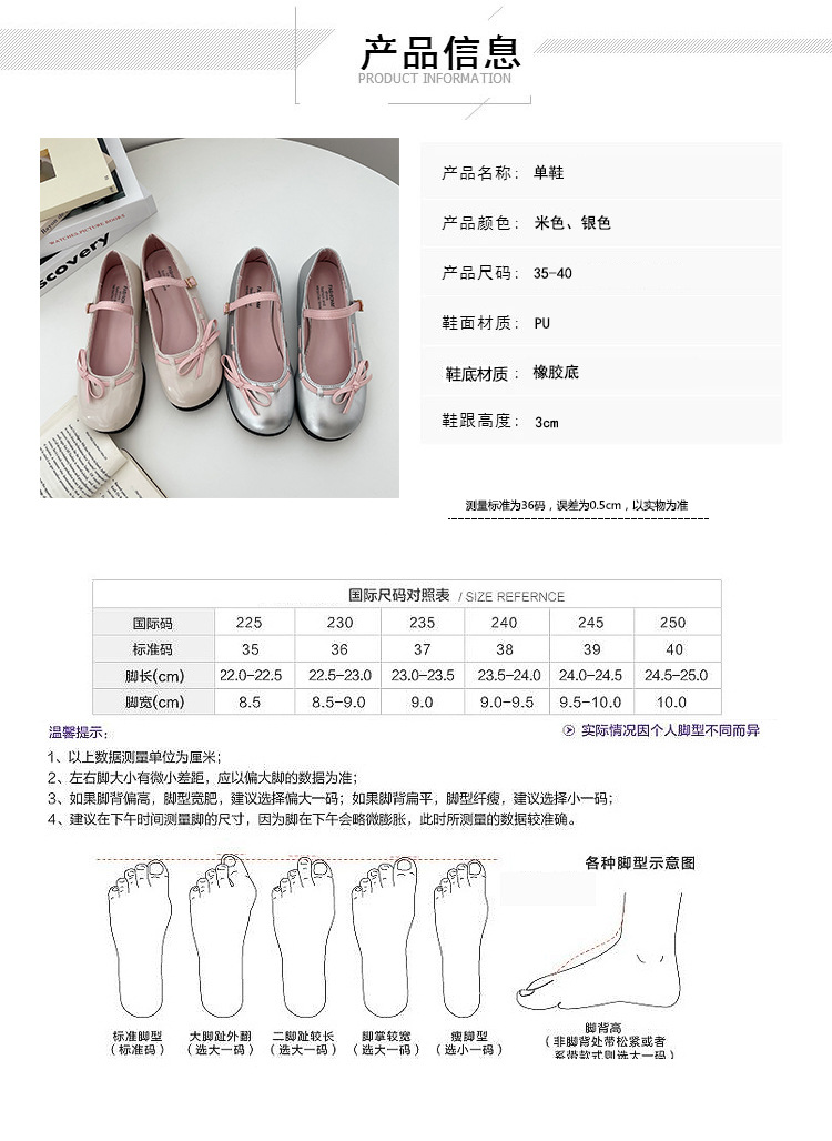 둥근 발가락 활 두꺼운 밑바닥 메리 제인 가죽 신발 여성의 여름 2024 새로운 프랑스 얕은 입 실버 신발스토어 가기