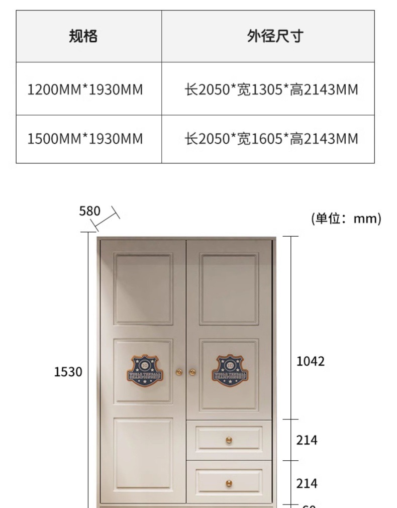 • 1590*2160*1360 외부 침대 아래 1.5 미터