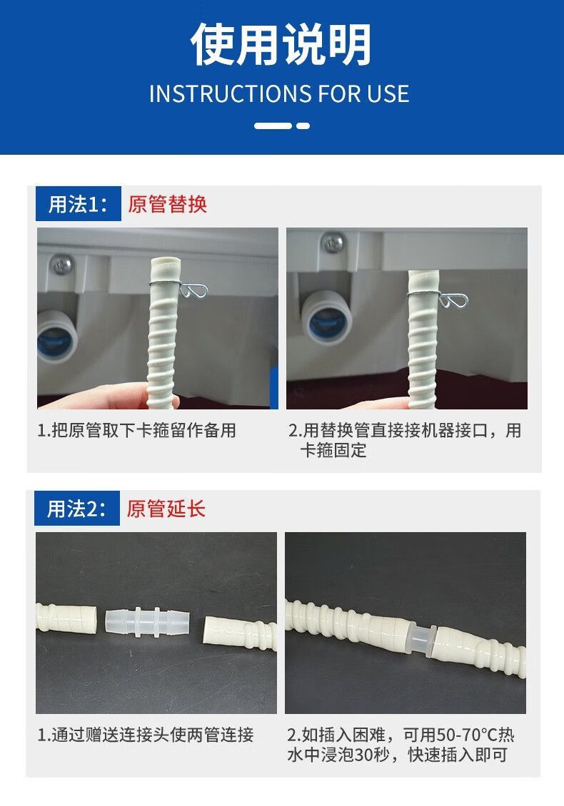 파나소닉 식기 세척기 확장 배수 연장 맞대기 호스 추가 두꺼운 고온 내성 하수관 인터페이스에 적합스토어 가기