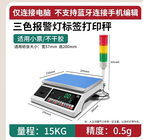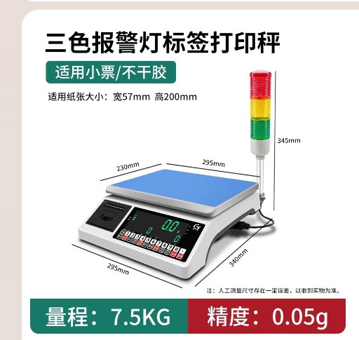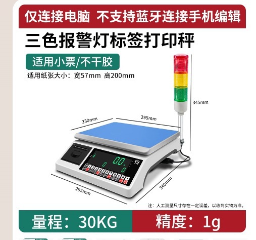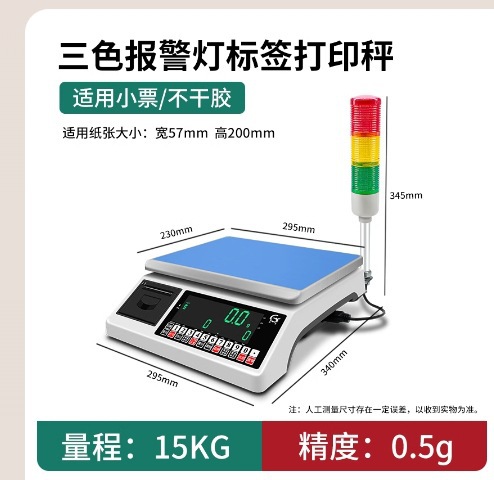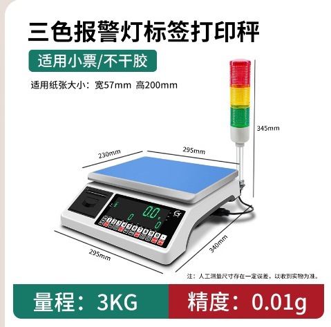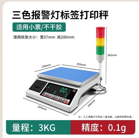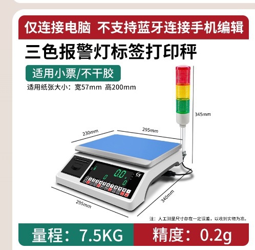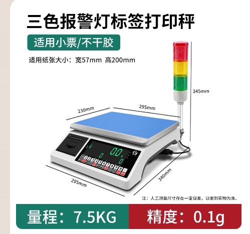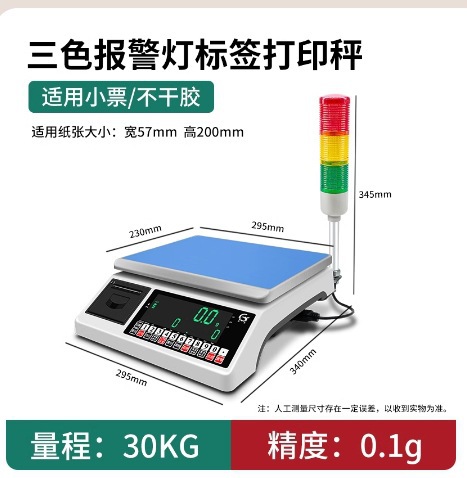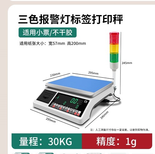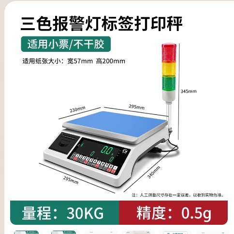 带打印电子秤不干胶标签小票商用称重一体机条码秤三色灯声光报警