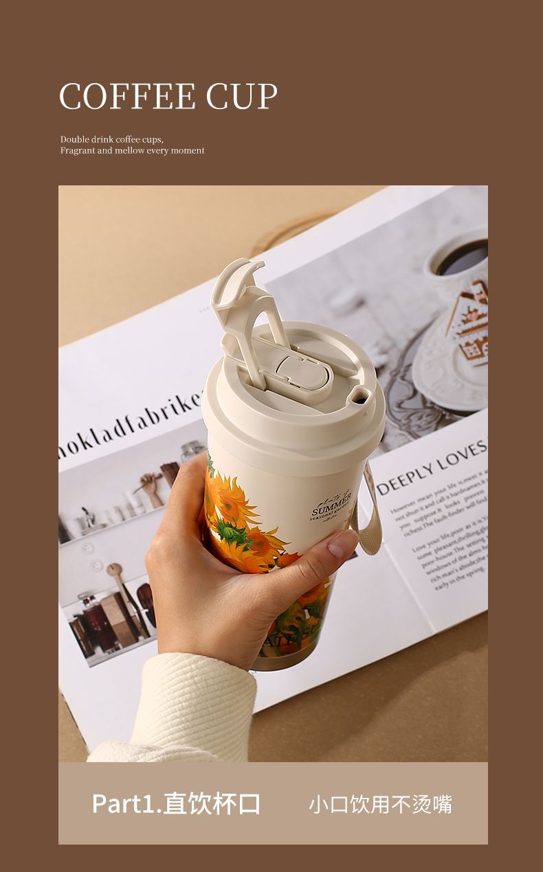 반 고흐 머그 커피 컵 여자 2024 새로운 높은 색상 값 더블 음료 컵 릴리 계곡 선물 컵 사용자 정의