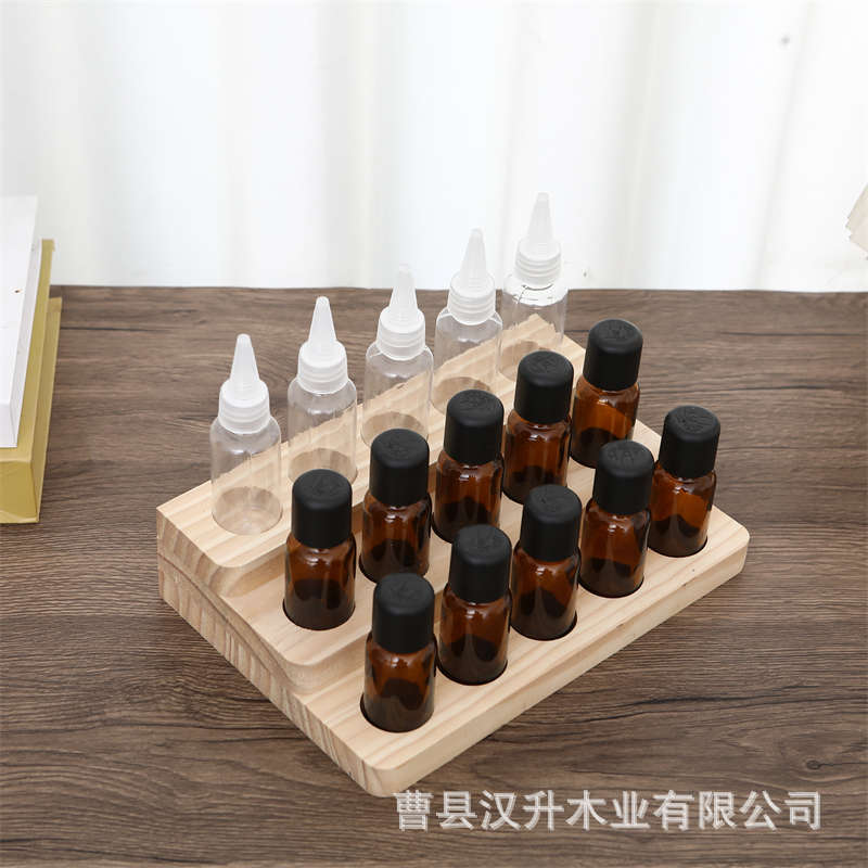 원목 3단 에센셜 오일 랙 나무 탁상용 수납 랙 네일 아트 에센셜 오일 병 보관 스탠드 전시대
