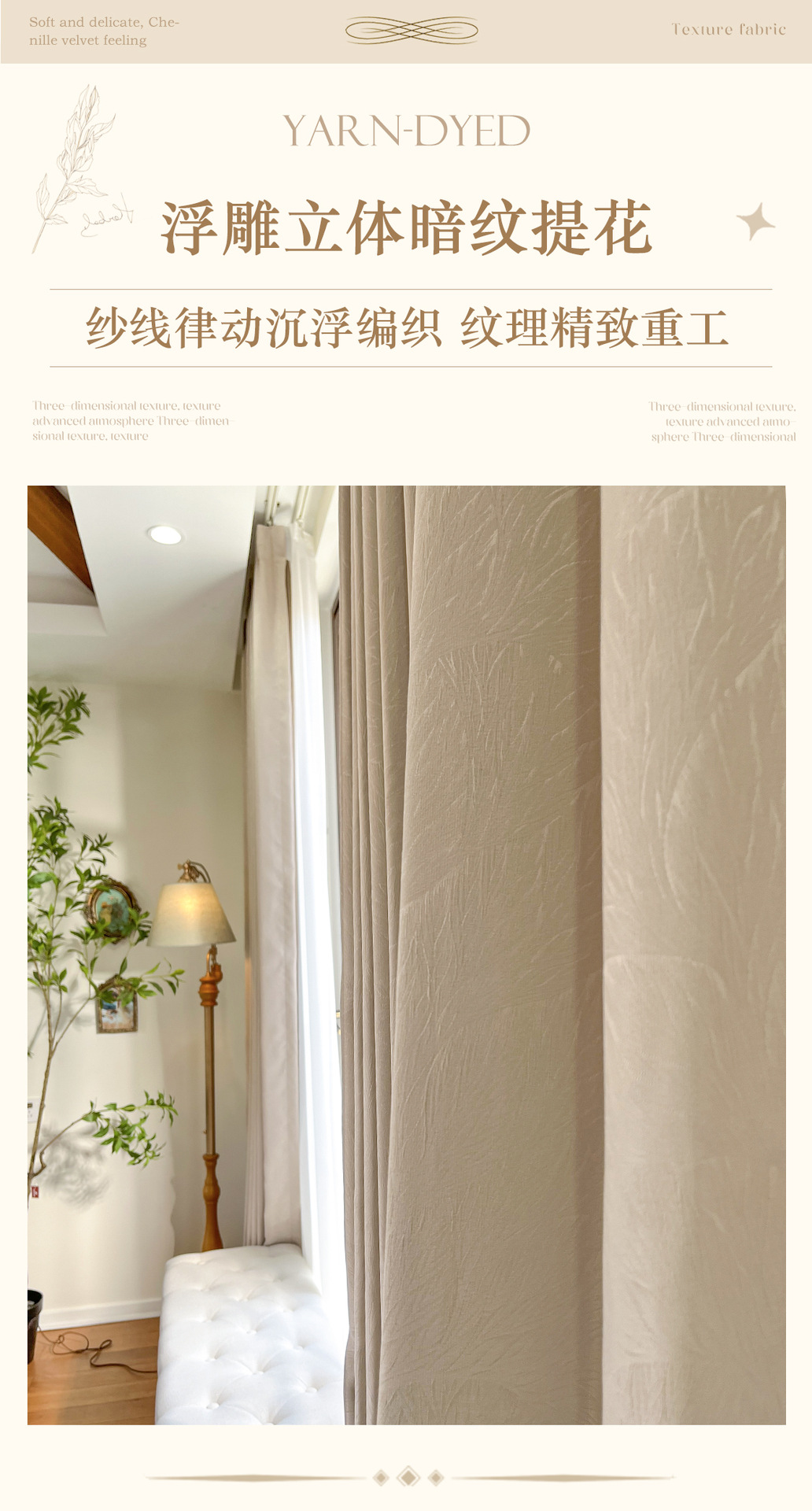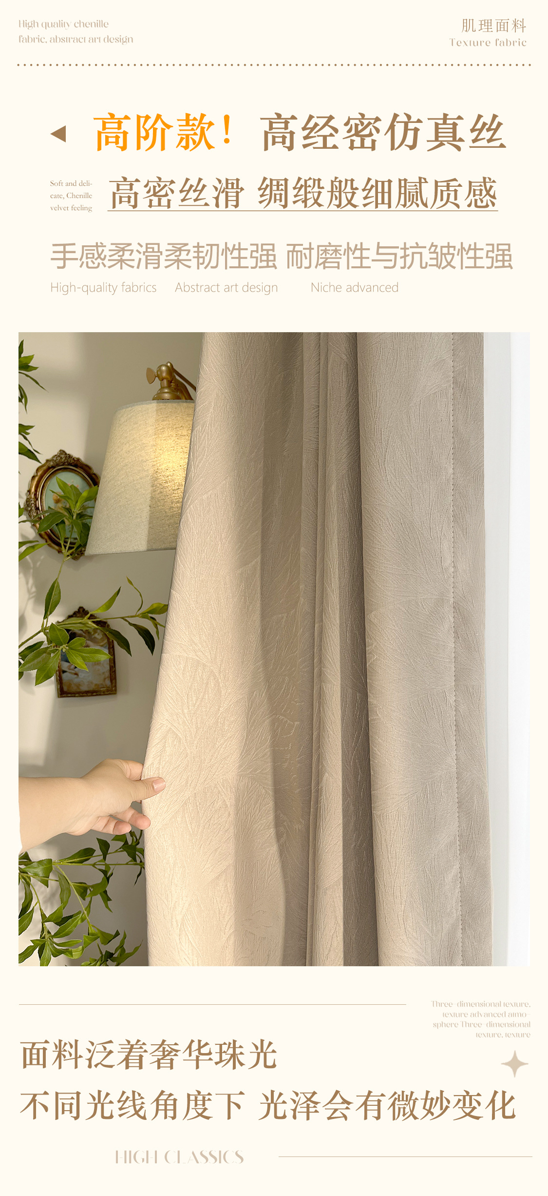 리프를 찾는 고급 라이트 럭셔리 양각 자카드 광택 커튼 고정밀 시뮬레이션 실크 새틴 텍스처 천 커튼