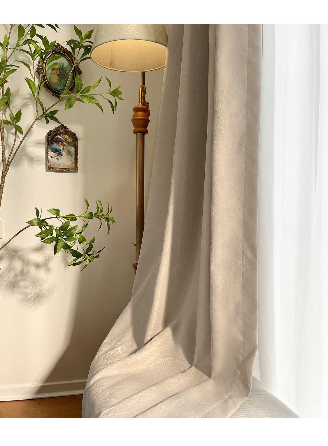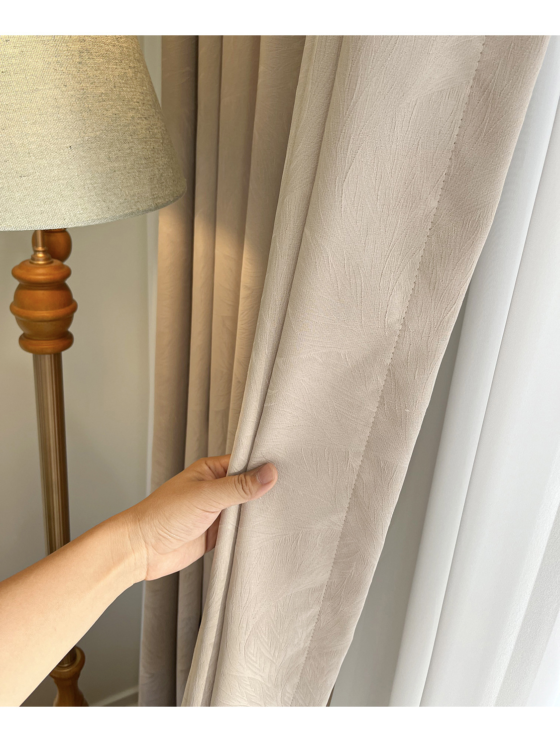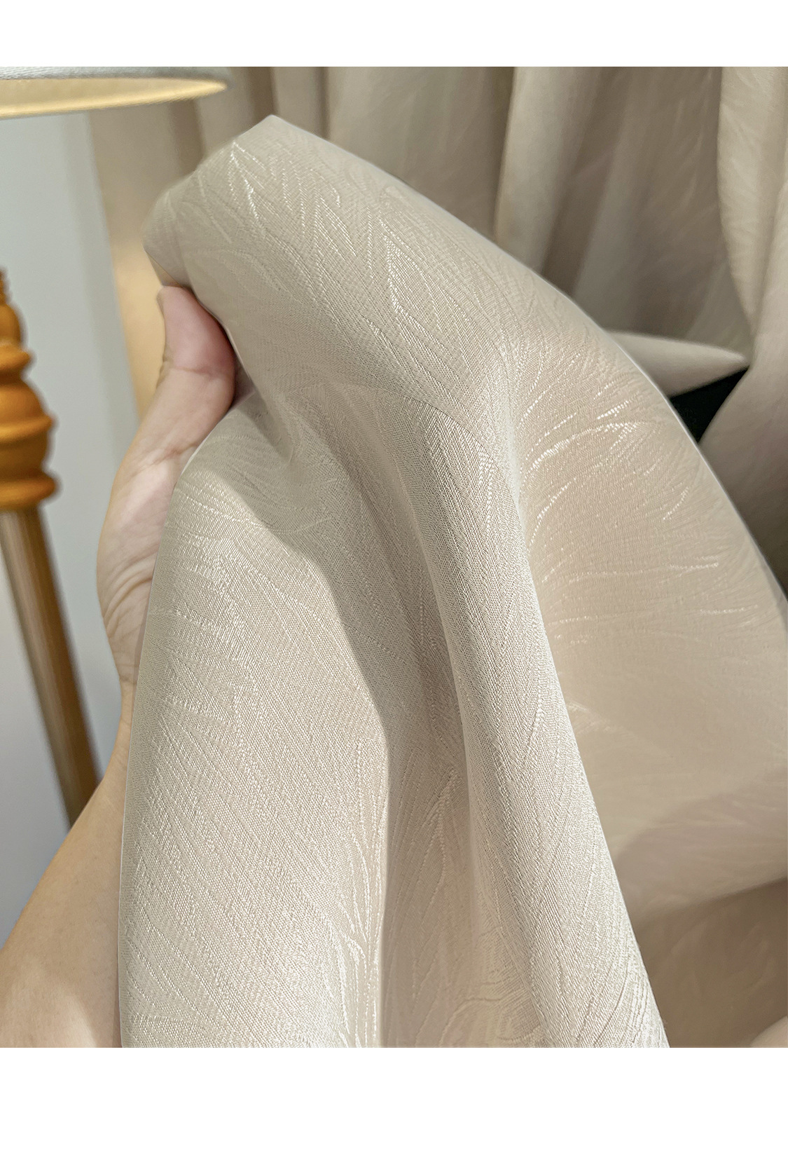 리프를 찾는 고급 라이트 럭셔리 양각 자카드 광택 커튼 고정밀 시뮬레이션 실크 새틴 텍스처 천 커튼스토어 가기