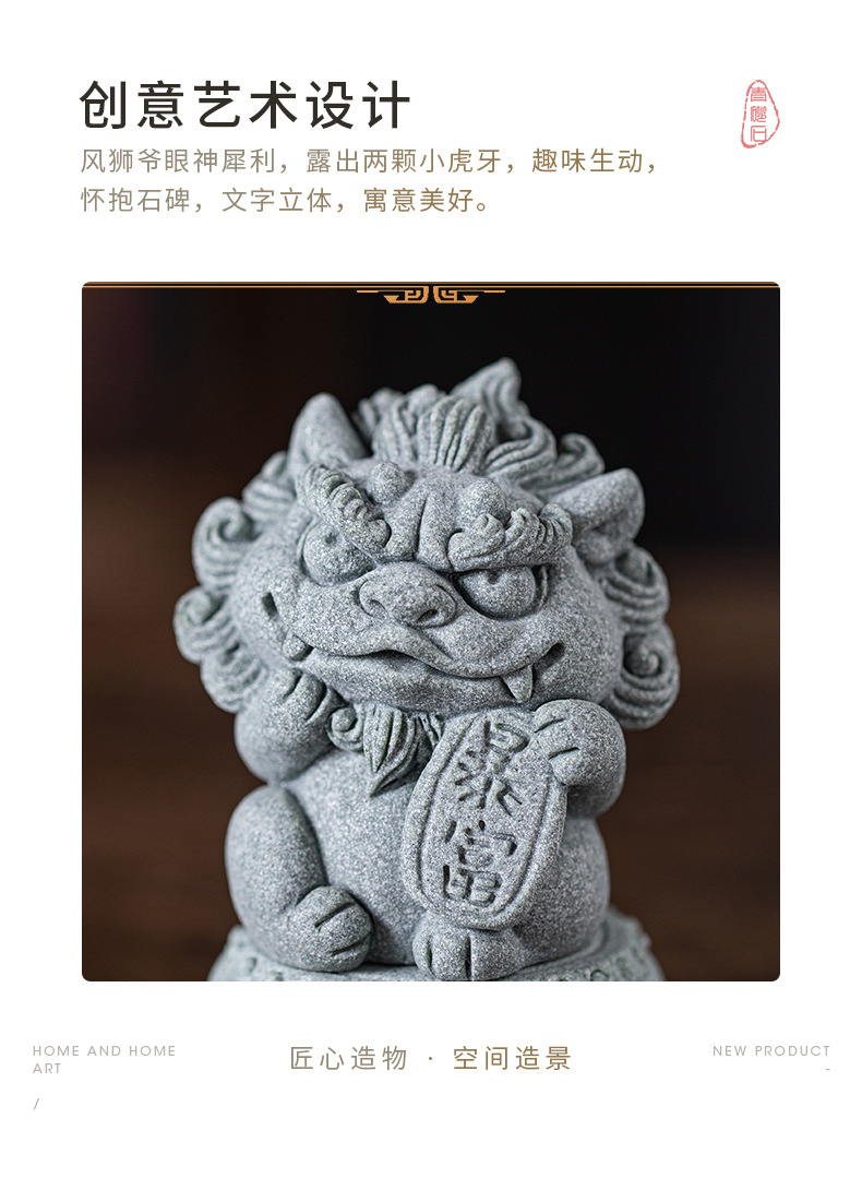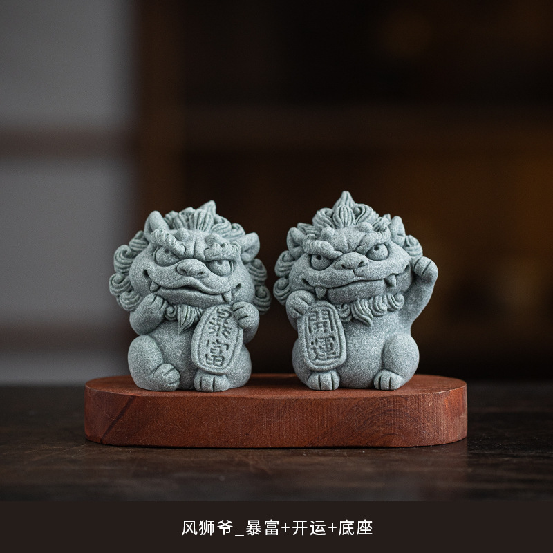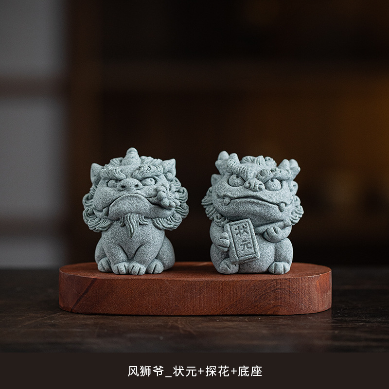 • 작은 신 짐승 [풍부하고 운이 좋은] 한 쌍의 장식품 타원형 기초
