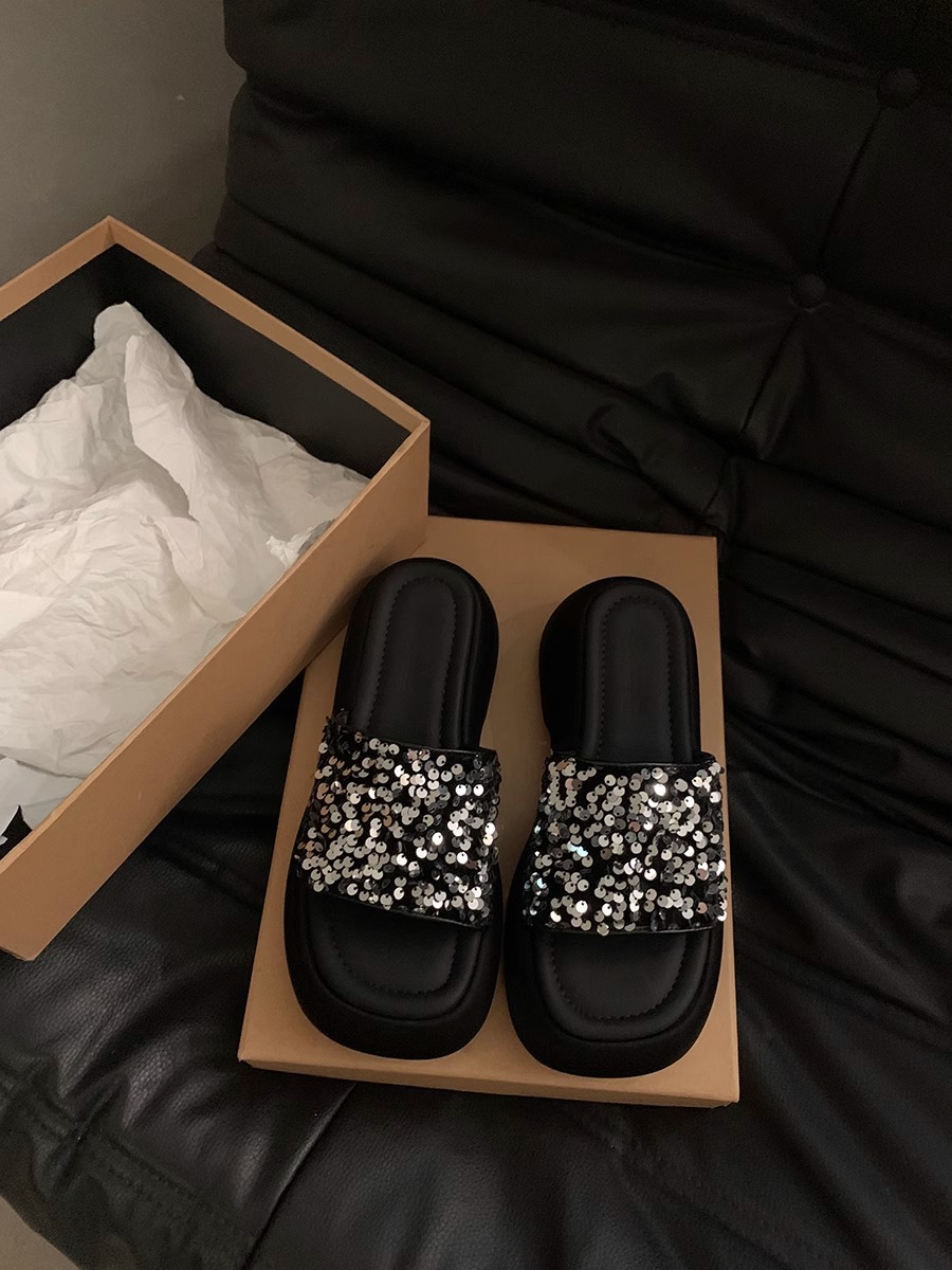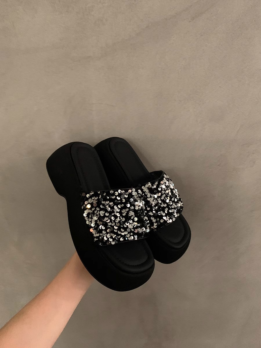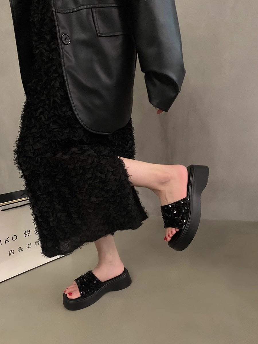 블랙 스팽글 플랫폼 슬리퍼 여성화 2026년 신상 여름 해변 휴가용 샌들