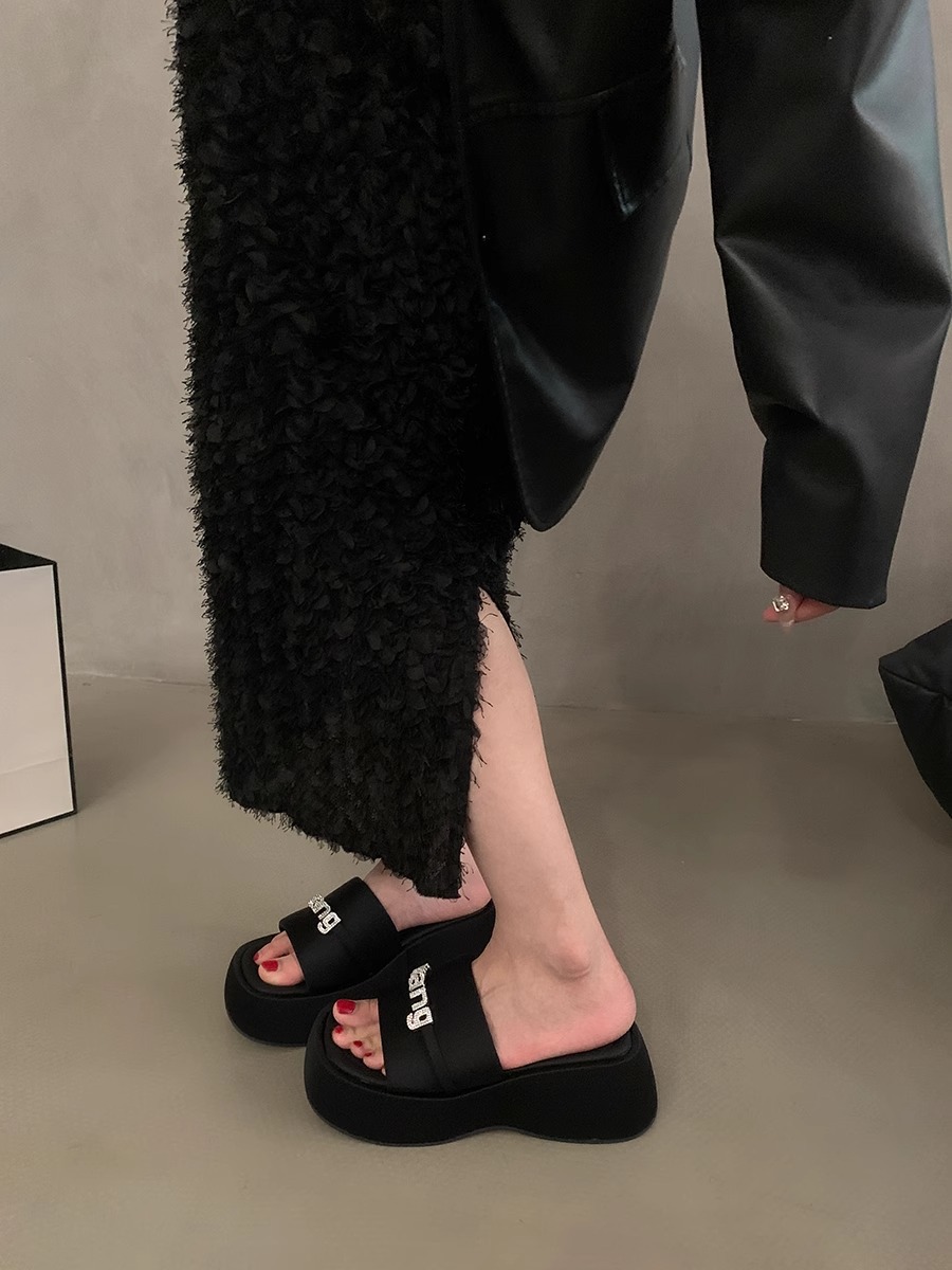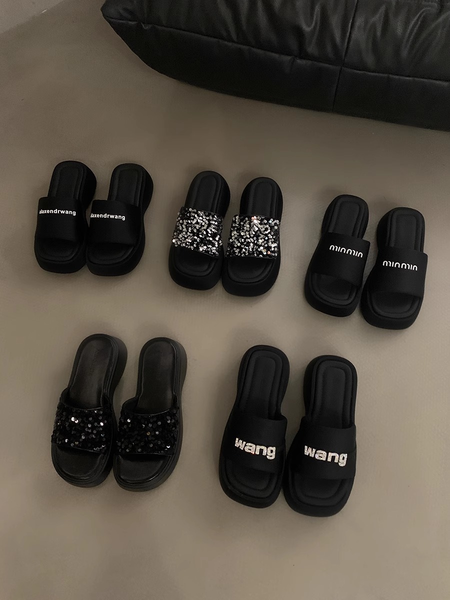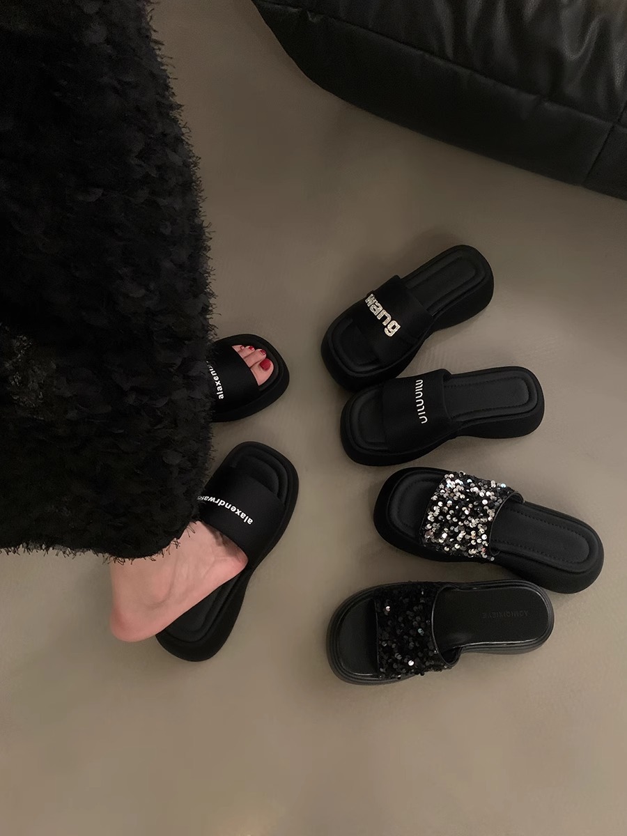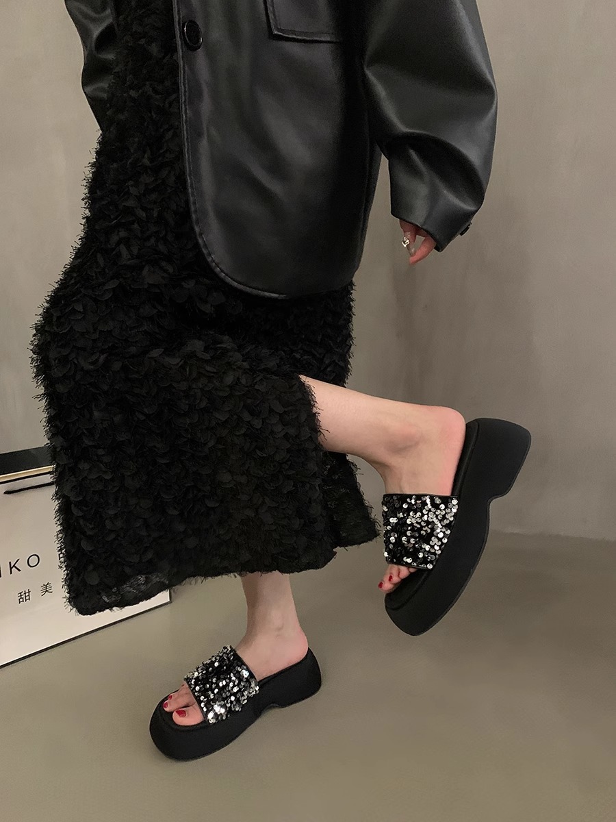 블랙 스팽글 플랫폼 슬리퍼 여성화 2026년 신상 여름 해변 휴가용 샌들스토어 가기