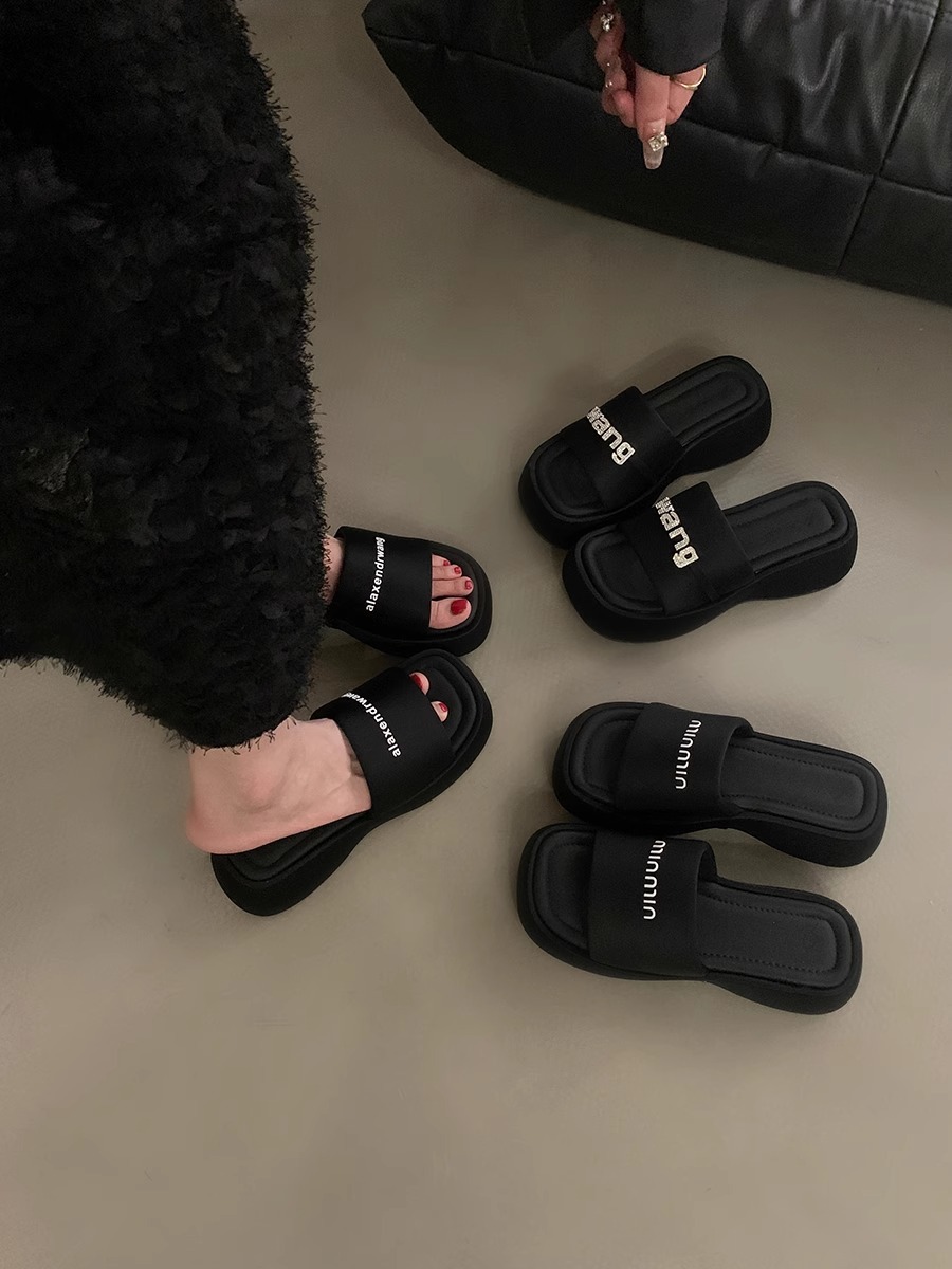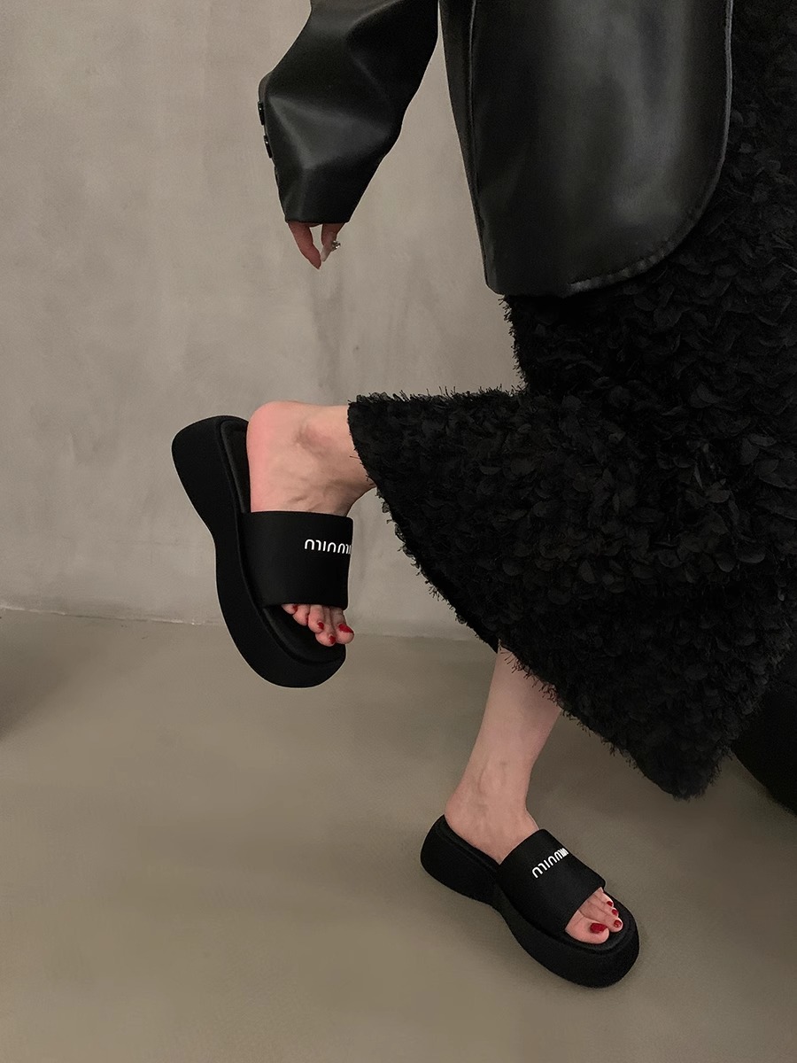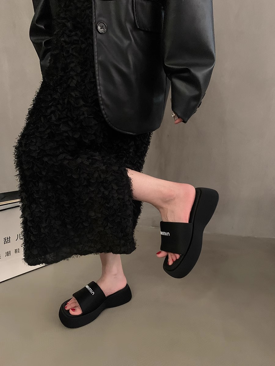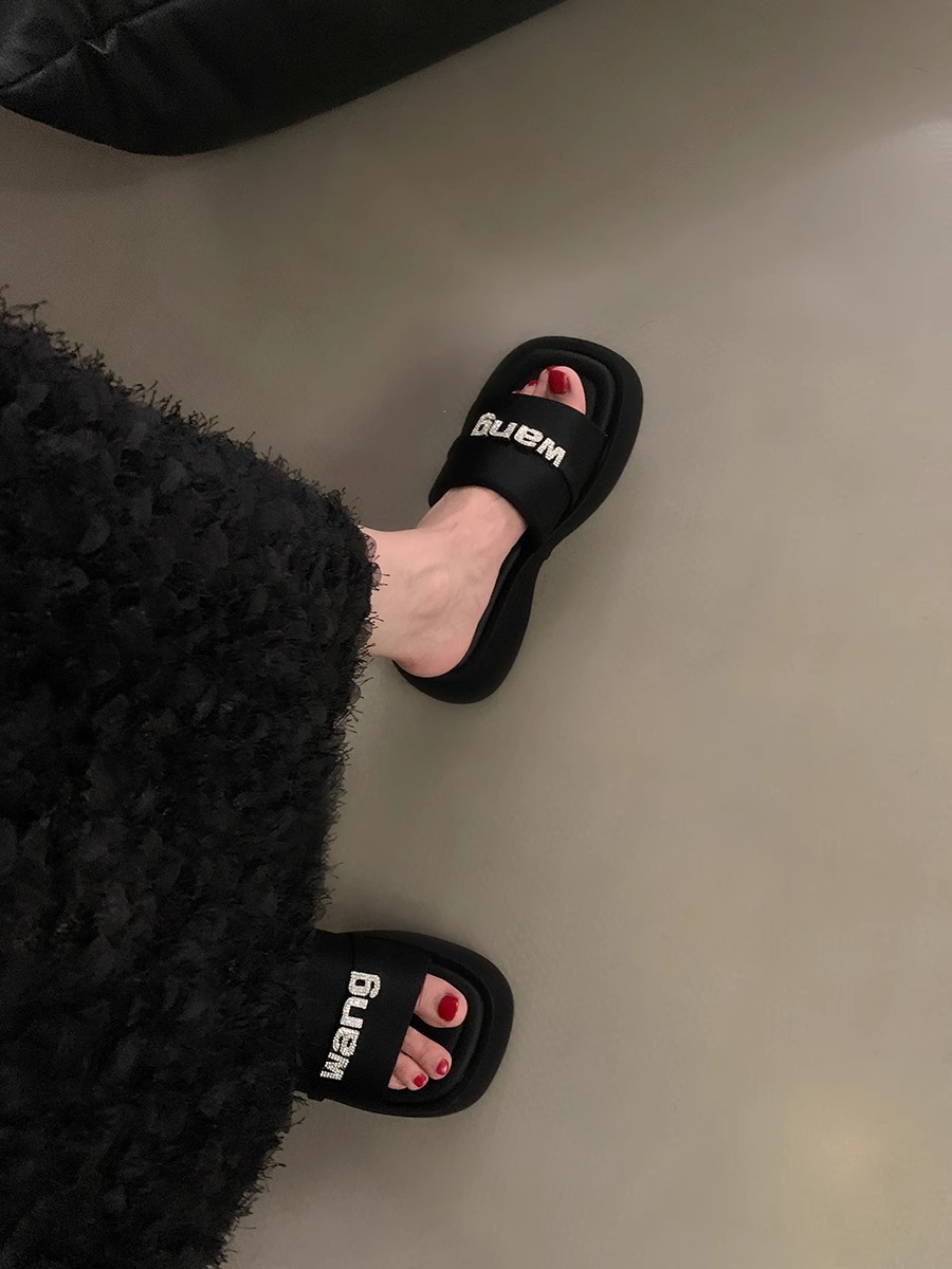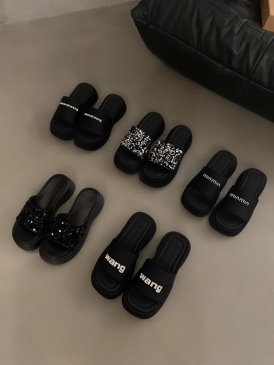 블랙 스팽글 플랫폼 슬리퍼 여성화 2026년 신상 여름 해변 휴가용 샌들스토어 가기