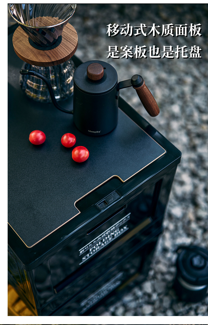 캠핑 박스 블랙 3 도어 캠핑 테이블 야외 스토리지 박스 실내 테이블 자동차 스토리지 턴오버 처리
