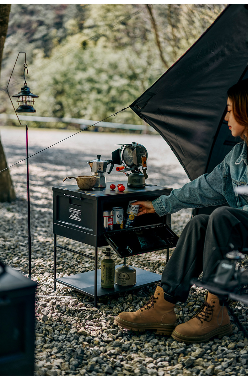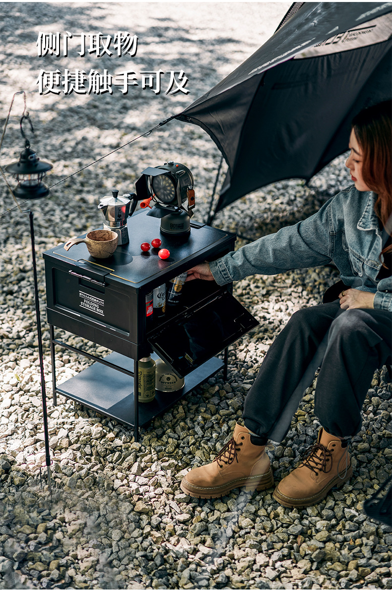 캠핑 박스 블랙 3 도어 캠핑 테이블 야외 스토리지 박스 실내 테이블 자동차 스토리지 턴오버 처리스토어 가기