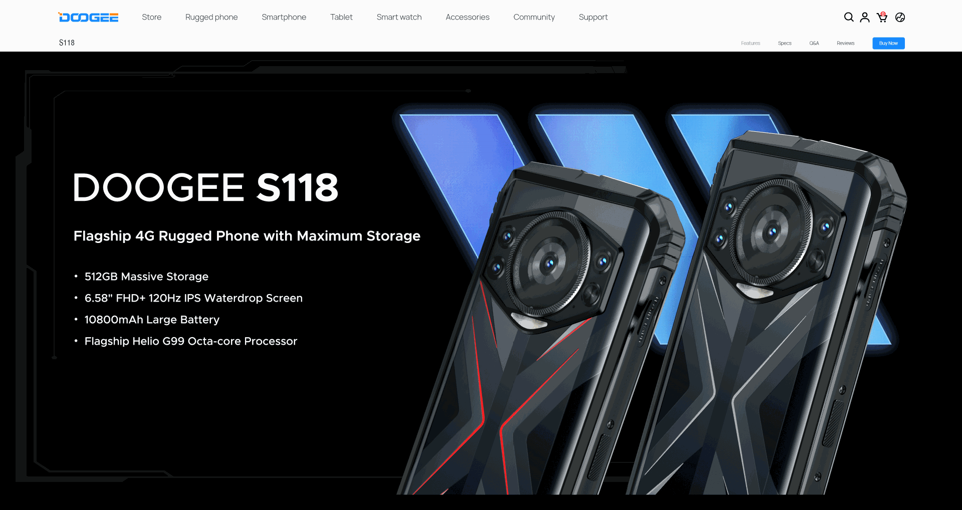 DOOGEE Doug S118 6.58 "8 512G 10800mAh NFC 안드로이드 14 삼중 휴대 전화스토어 가기