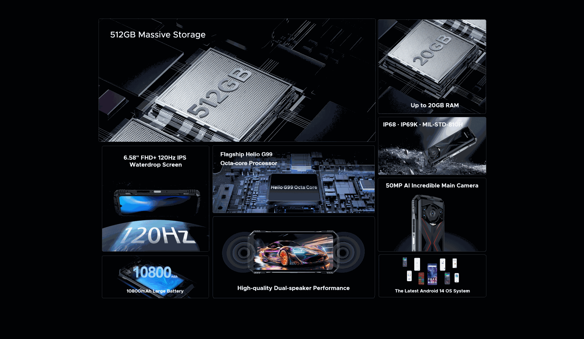 DOOGEE Doug S118 6.58 "8 512G 10800mAh NFC 안드로이드 14 삼중 휴대 전화