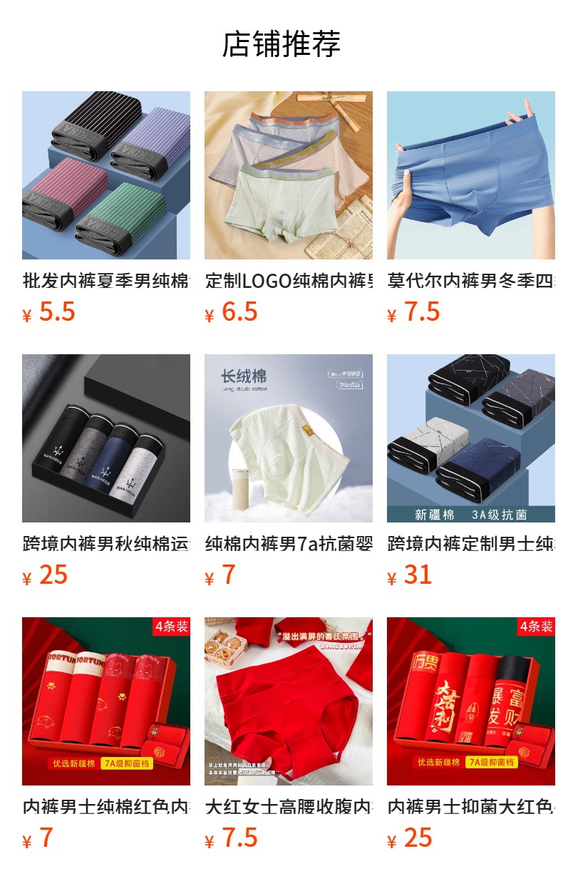 남성용 순면 통기성 7A 항균 사각팬티 봄용 남성용 속건성 팬티스토어 가기