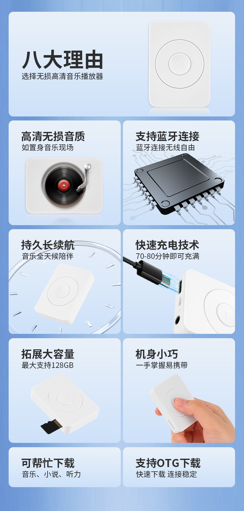 主要分两个款式:一:插卡版无蓝牙的,二:插卡版带有蓝牙的,机器本身不含内存和TF卡的,需要另外插上TF卡才可以使用听音乐。最大支持128GBTF卡,如需要配上TF卡可以联系客服改价,加上TF卡的价格。