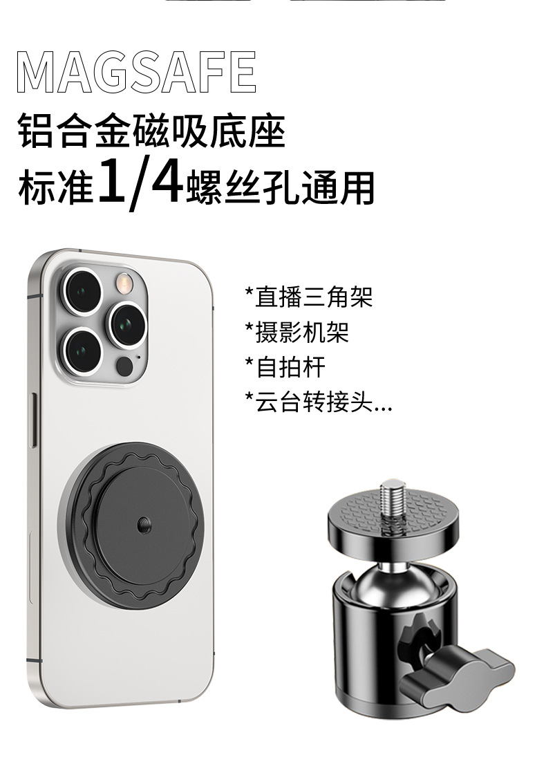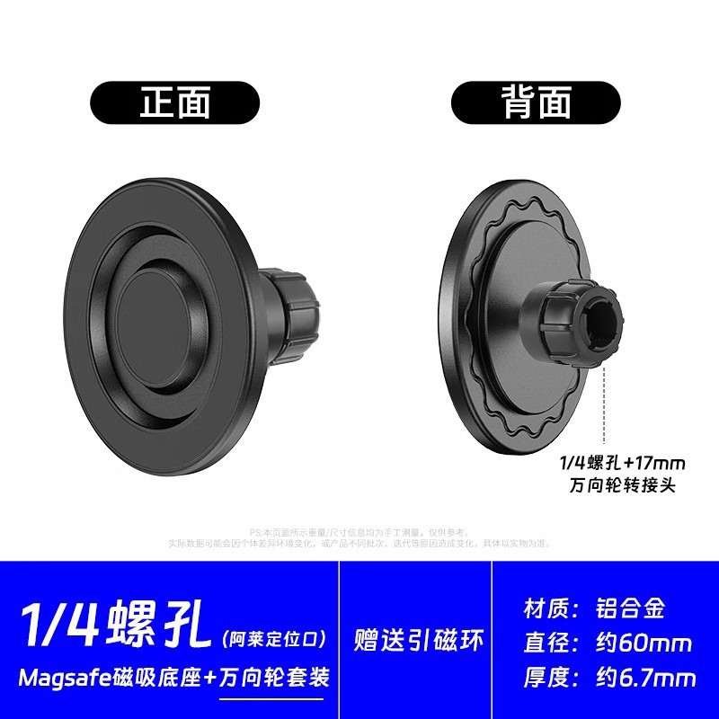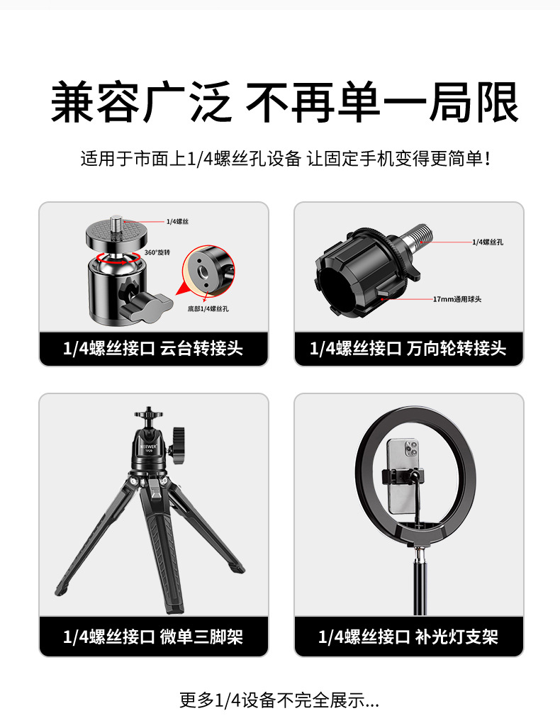 可通用于带1/4螺牙支架&云台,广泛适用车载/桌面等支架系列。