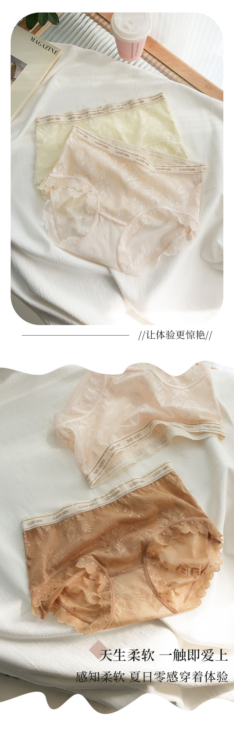 # 2447 # 봄여름 여성 속옷, 레이스 섹시 통기성 무봉제 미드웨이스트 일본풍 소녀 삼각팬티스토어 가기
