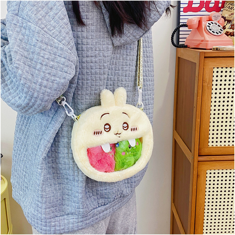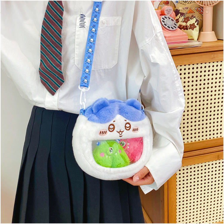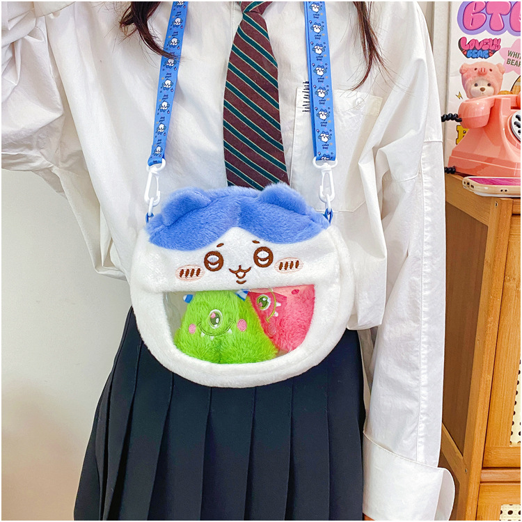 귀여운 만화 캐릭터 지이 베어 자수 플러시 백 투톤 백 우사 쇼키 숄더 크로스백 투명 백팩 도매스토어 가기