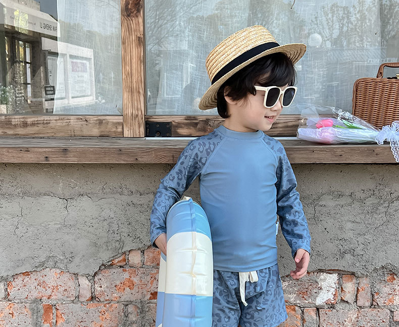 남자 보물 분할 수영복 소년 여름 빠른 건조 온천 수영 세트 중년 및 대형 어린이를위한 긴팔 해변 휴일 수영복