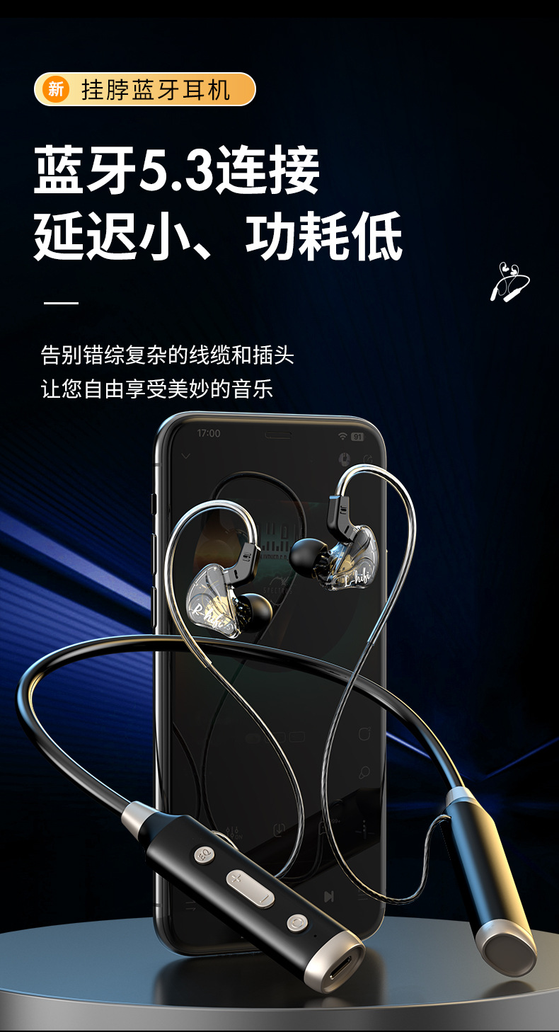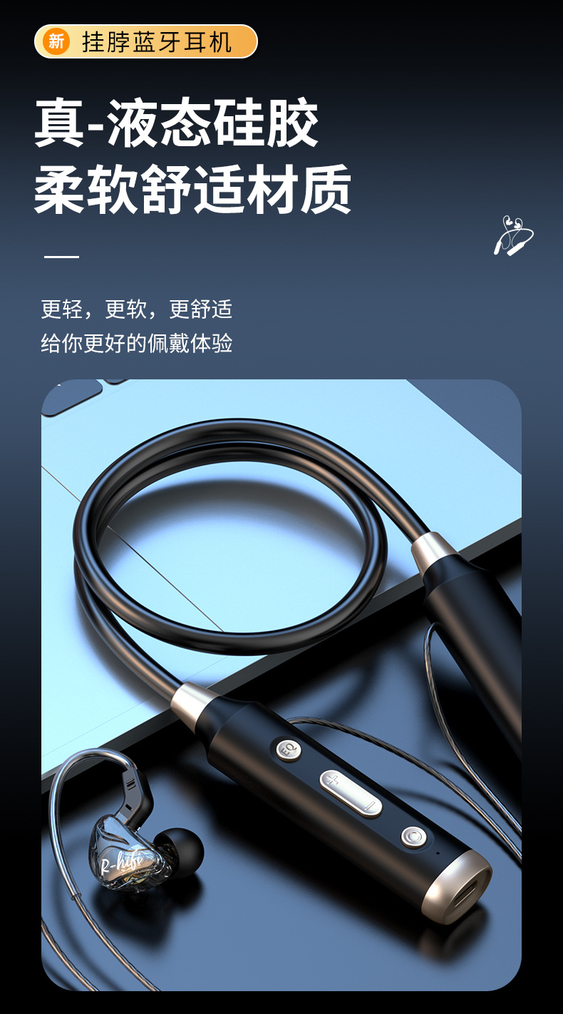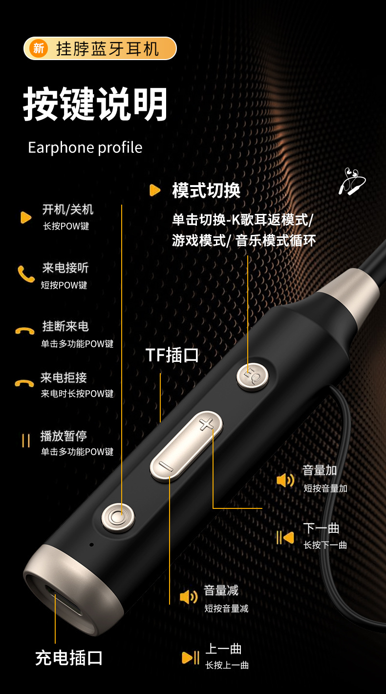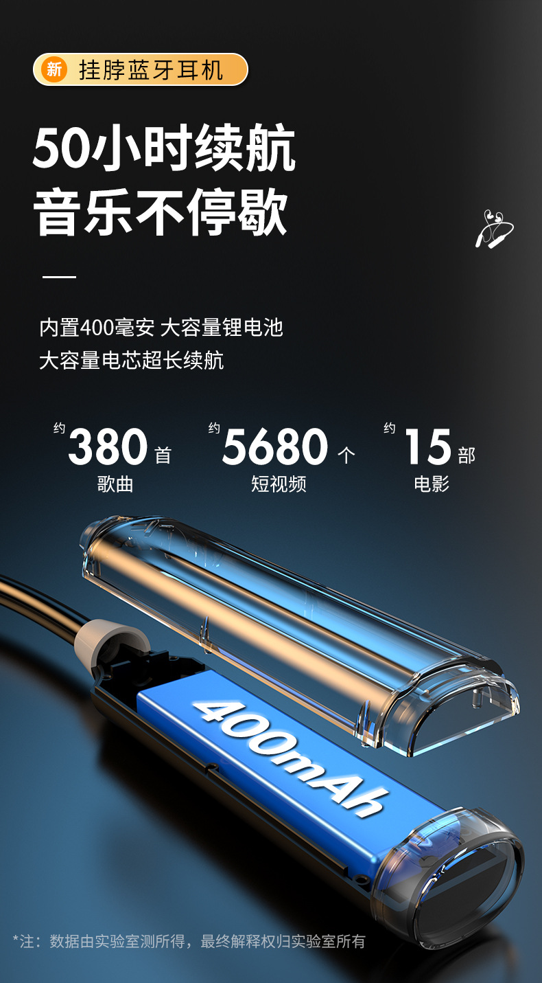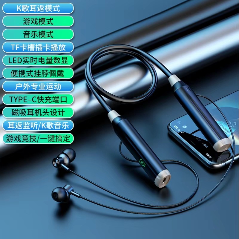 새로운 블루투스 이어폰 스포츠 넥밴드 초장시간 배터리 수명 귀걸이형 노래방 이어폰 게임 무선 이어폰