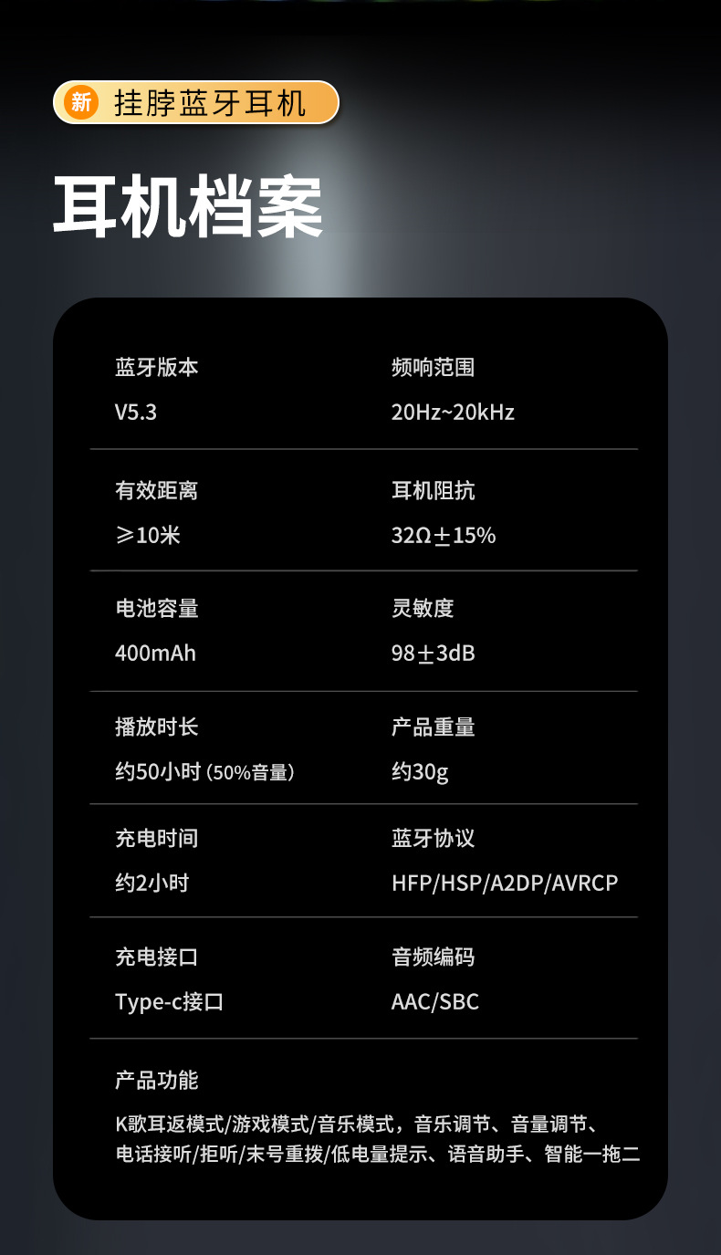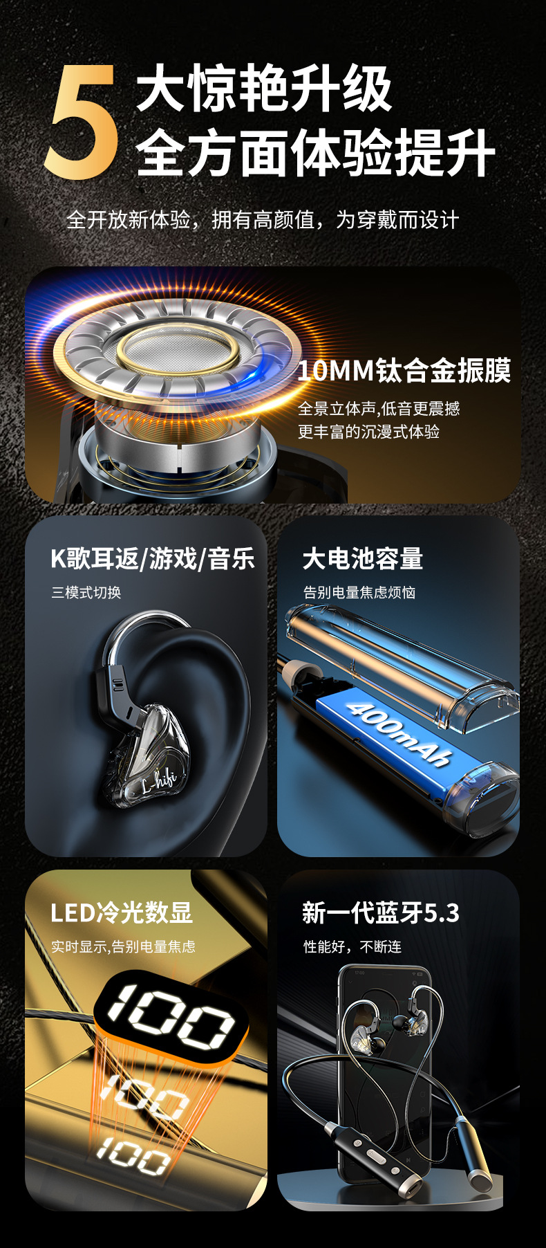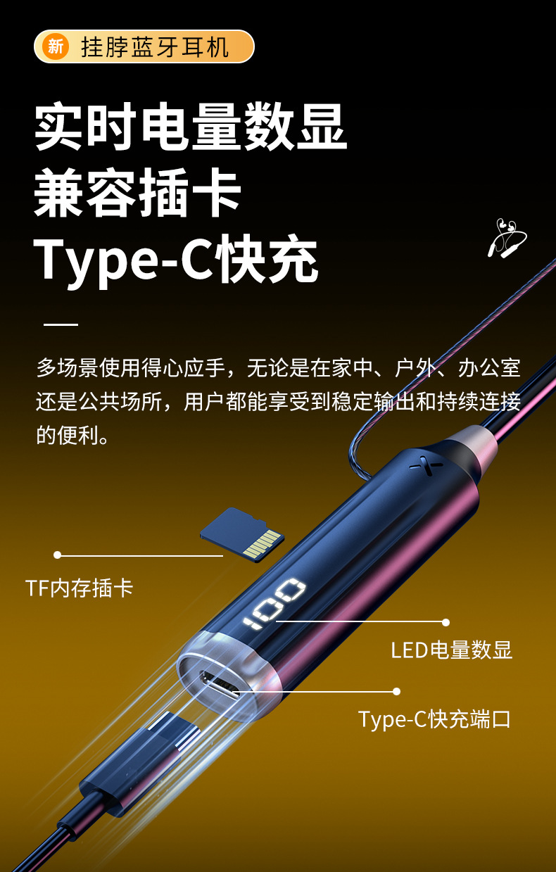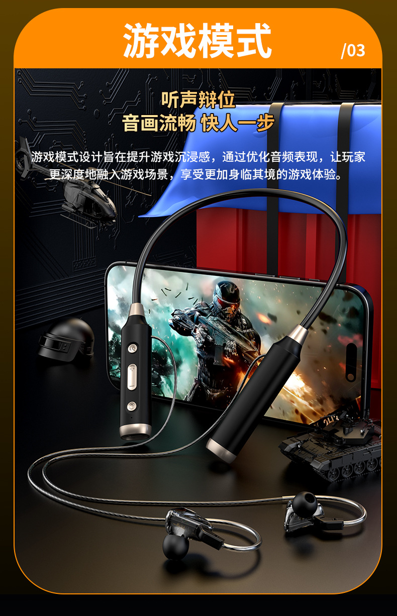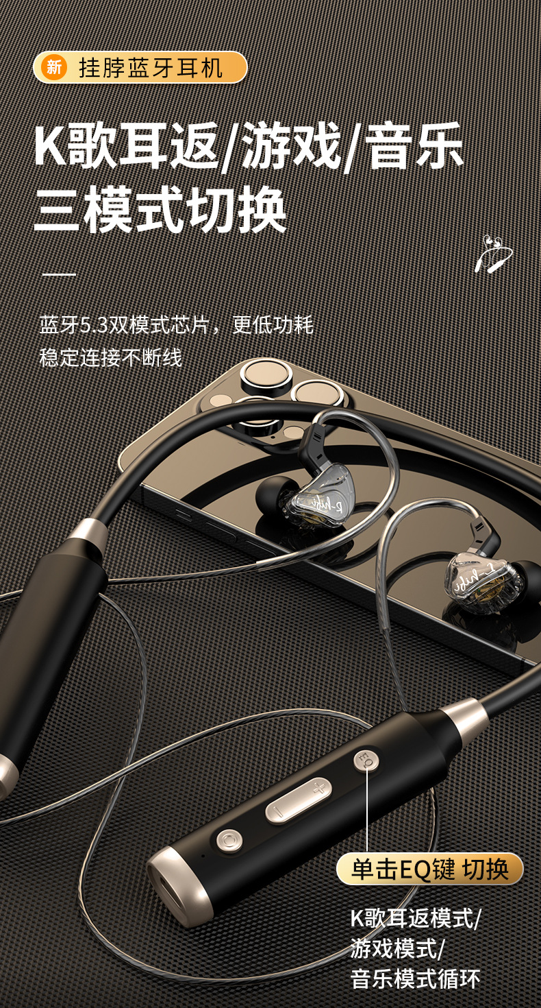 새로운 블루투스 이어폰 스포츠 넥밴드 초장시간 배터리 수명 귀걸이형 노래방 이어폰 게임 무선 이어폰