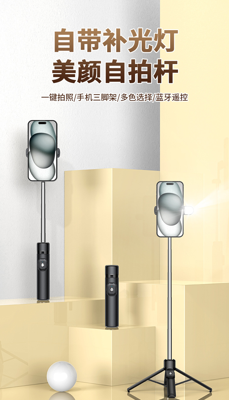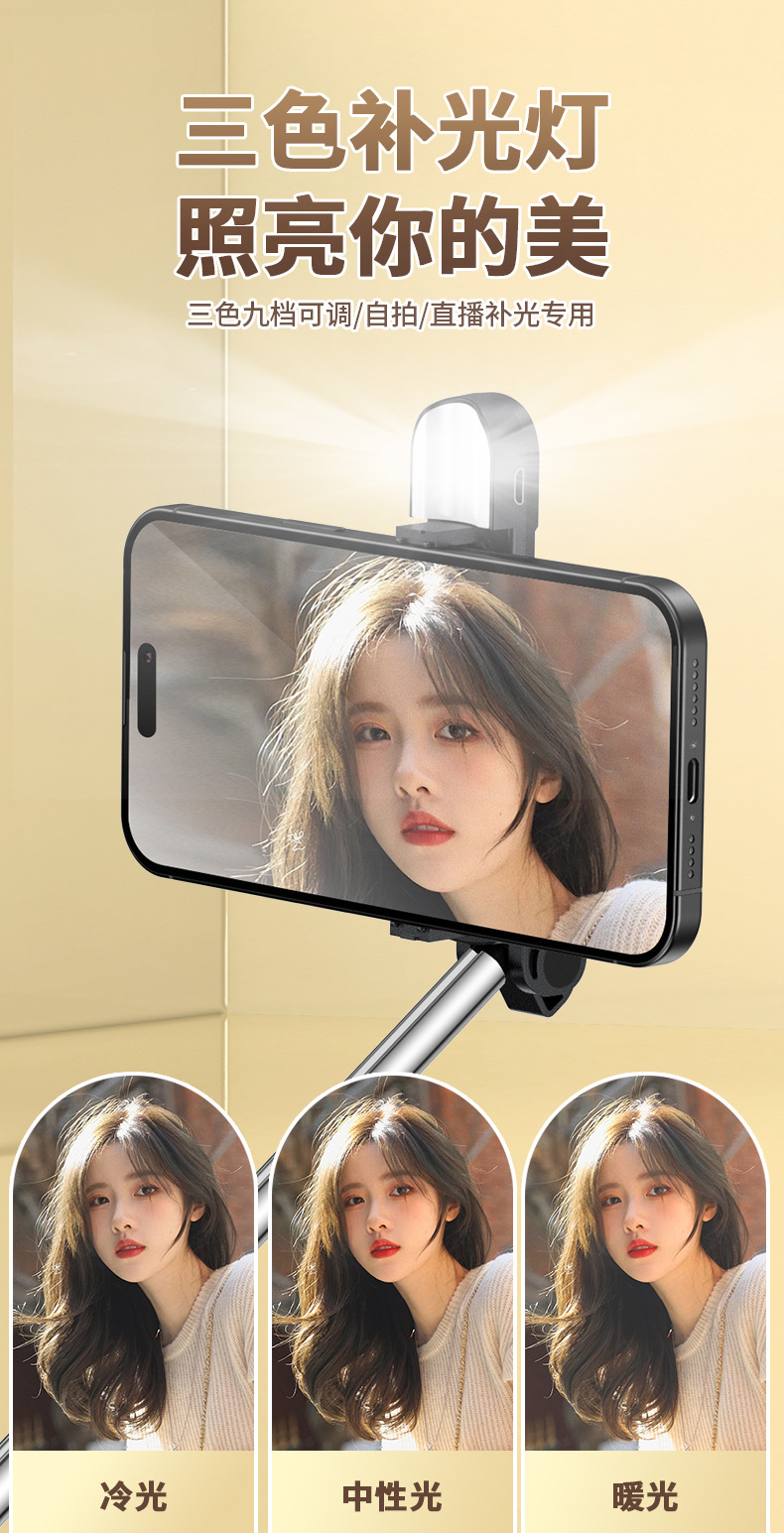 2024款夏季全新糖果色系手机无线蓝牙自拍杆。