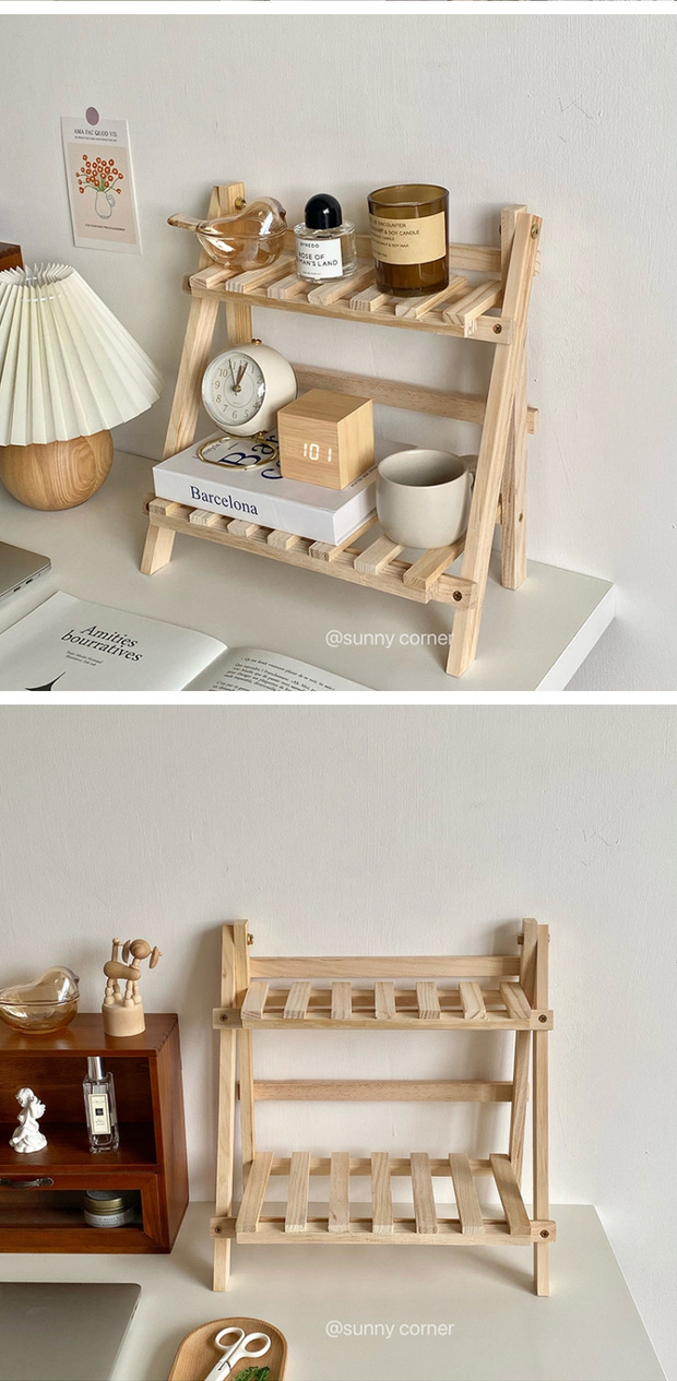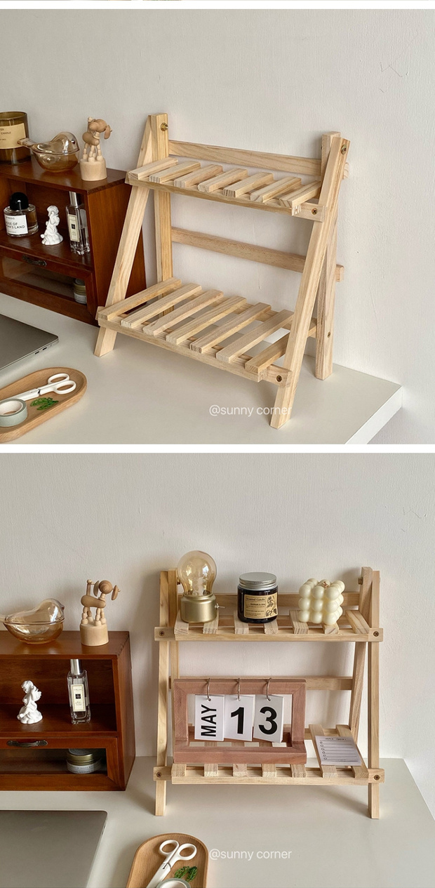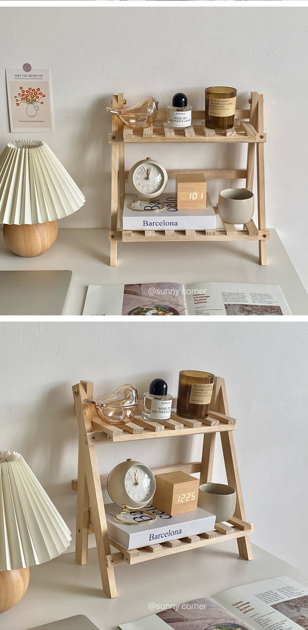 BTV4 심플 인 나무 더블 레이어 데스크탑 스토리지 랙 기숙사 룸 침실 책상 보관 전체스토어 가기