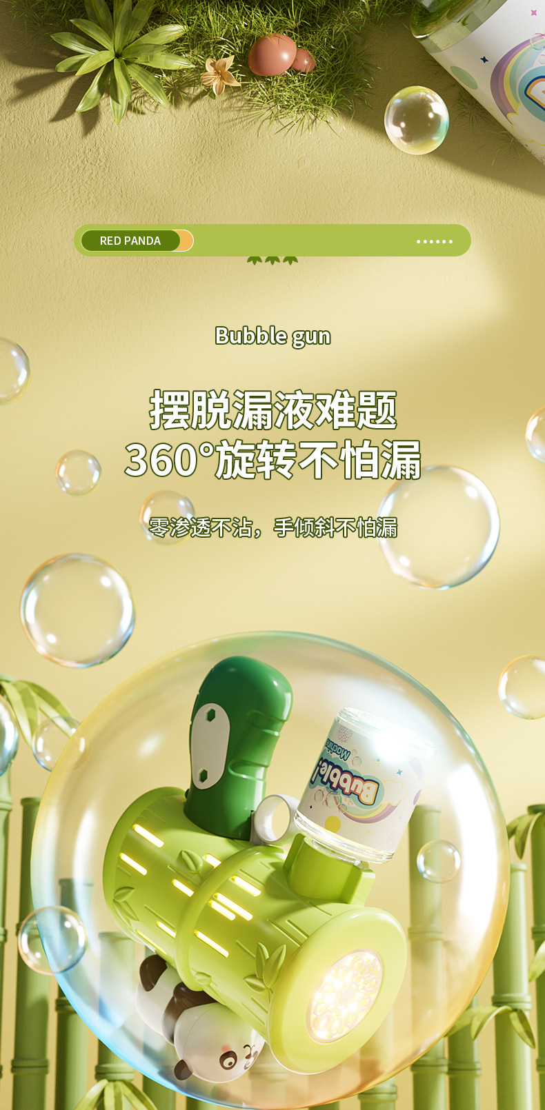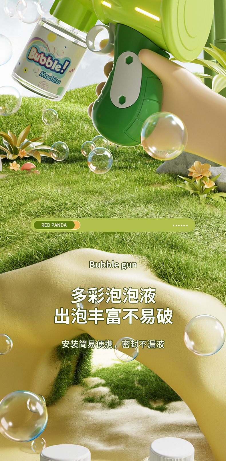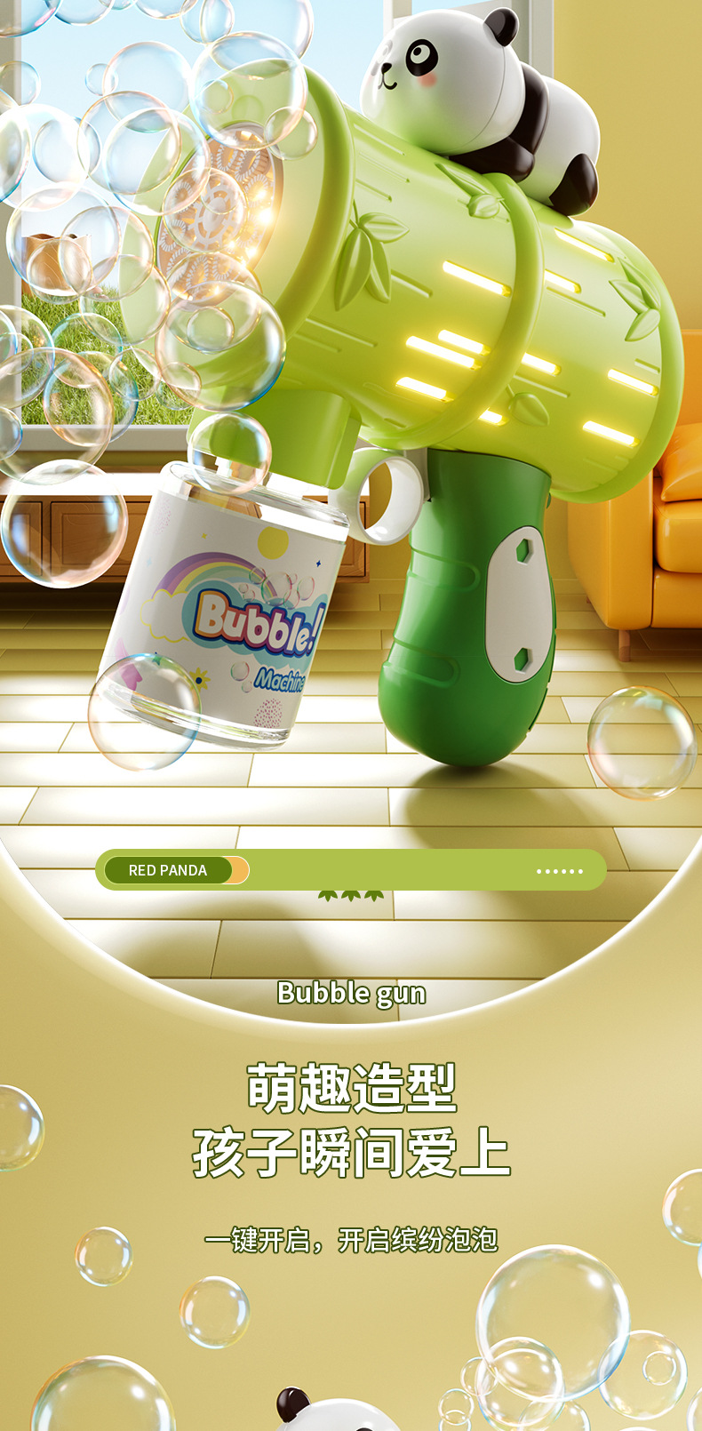 흔들리는 소리 폭발 팬더 거품 기계 어린이 자동 휴대용 빛 전기 부는 거품 총 스톨 장난감 도매