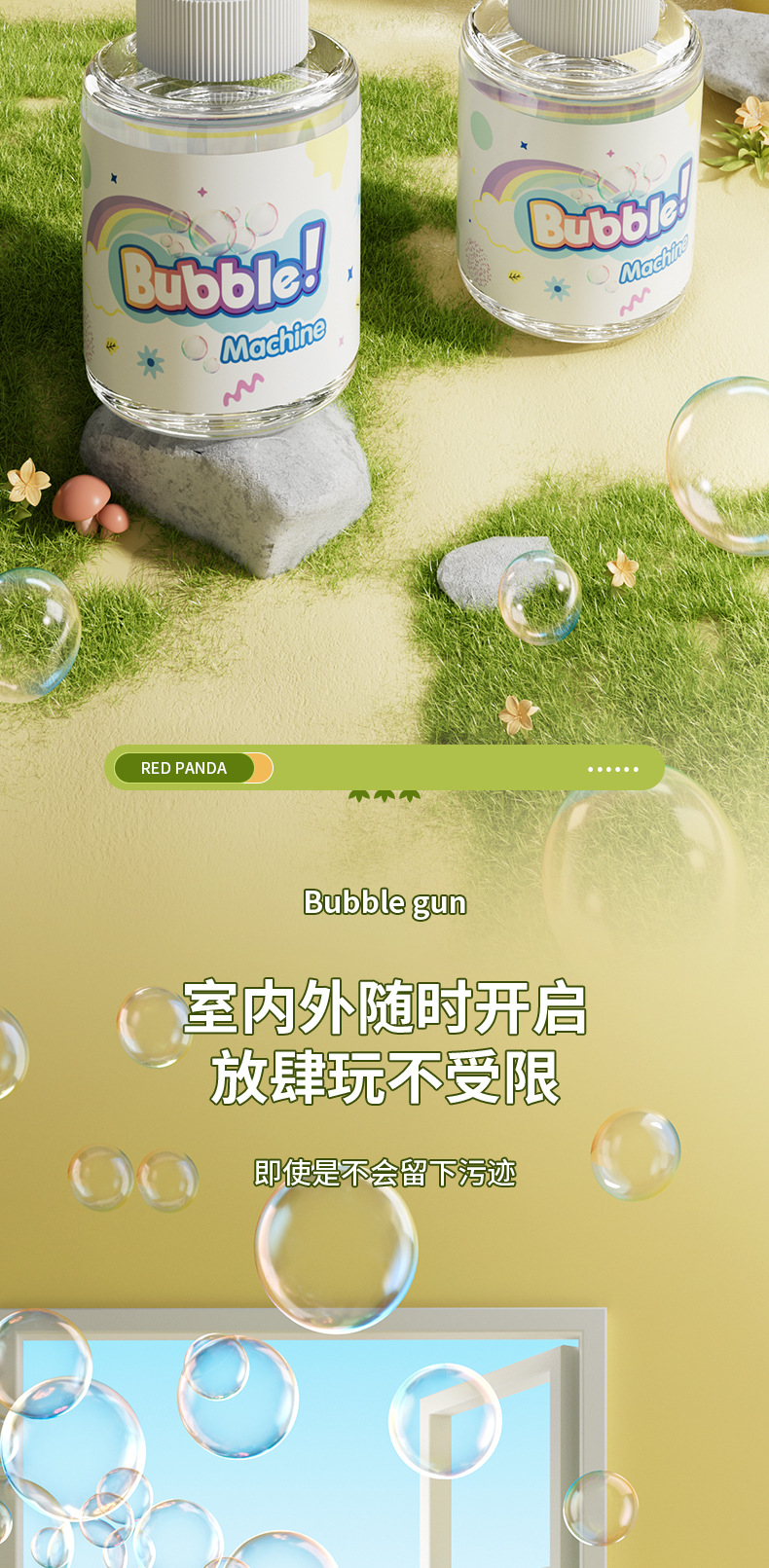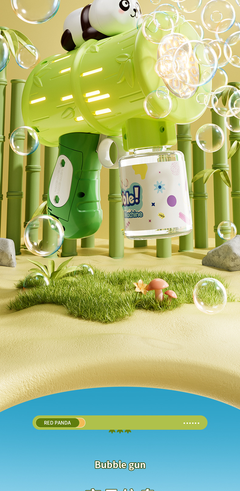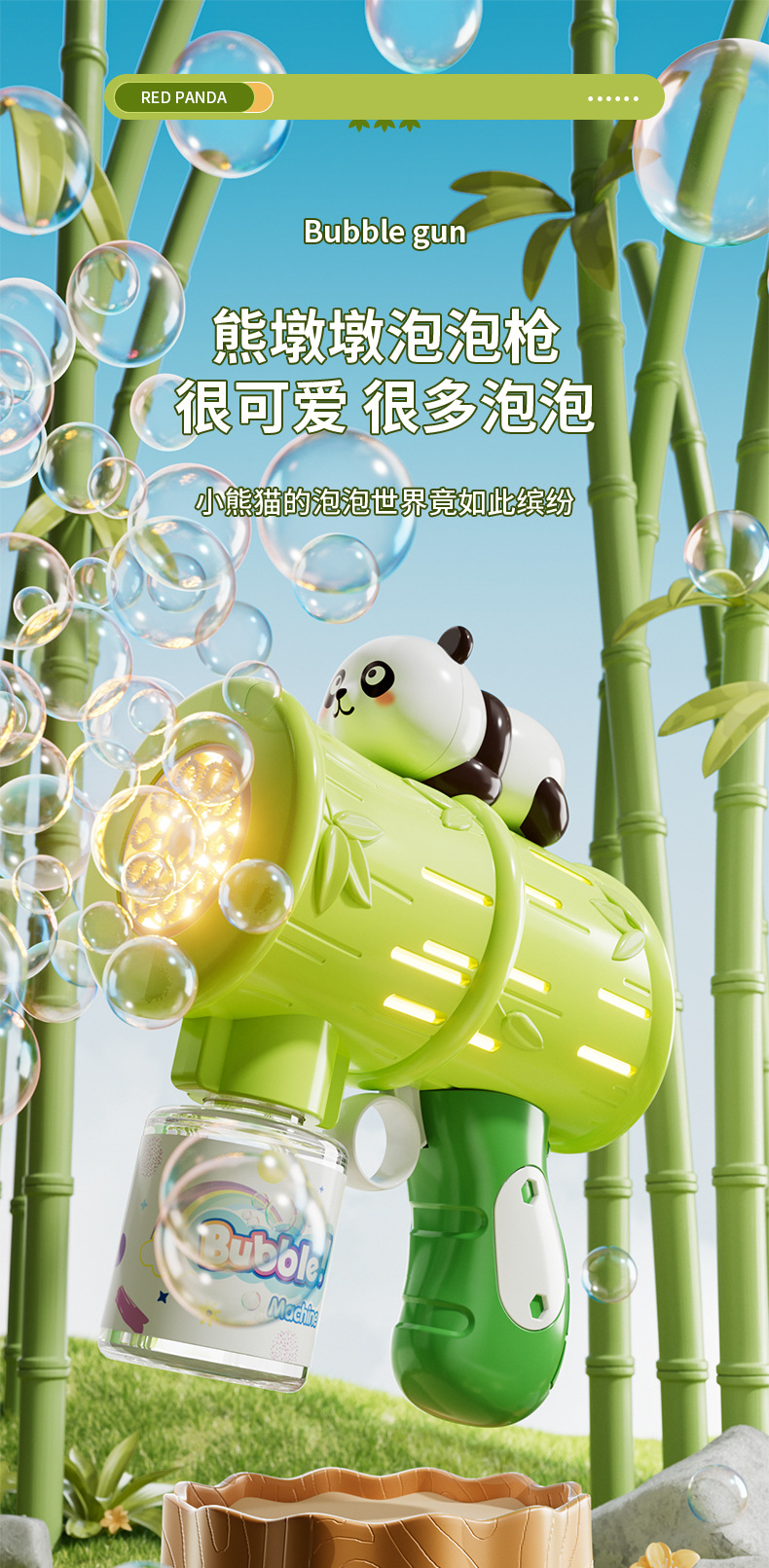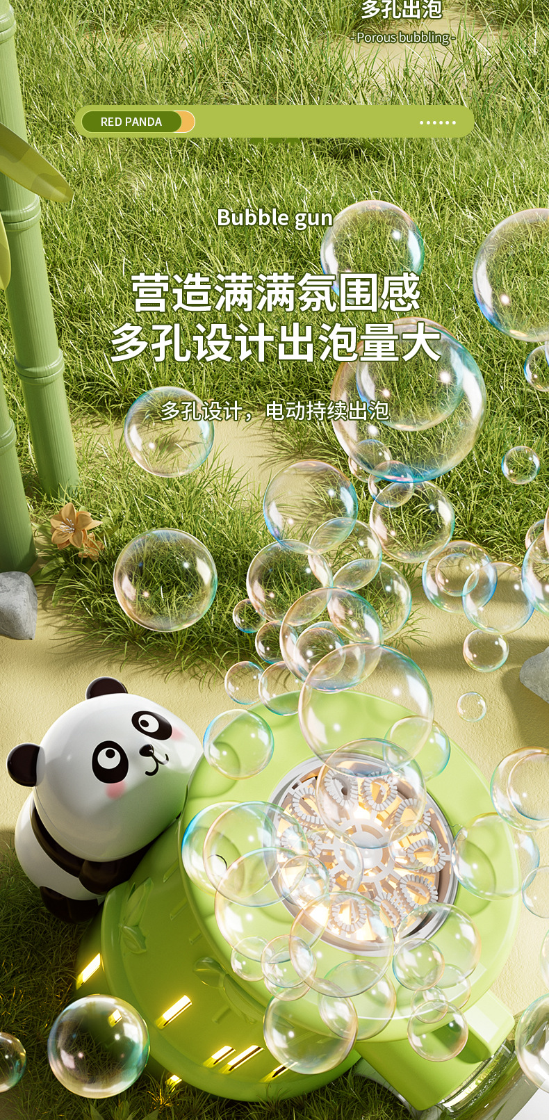 흔들리는 소리 폭발 팬더 거품 기계 어린이 자동 휴대용 빛 전기 부는 거품 총 스톨 장난감 도매스토어 가기