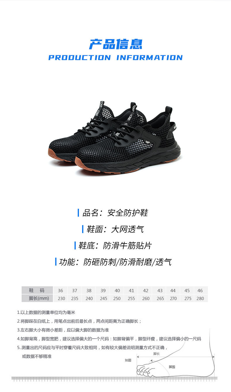 여름 통기성 노동 보호 신발 스매싱 방지 미끄럼 방지 마모 방지 건설 현장 보호 신발 경량 편안한 안전 보호 신발