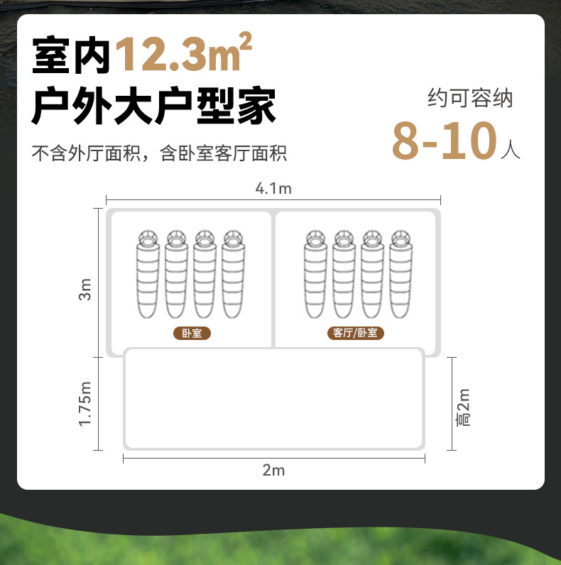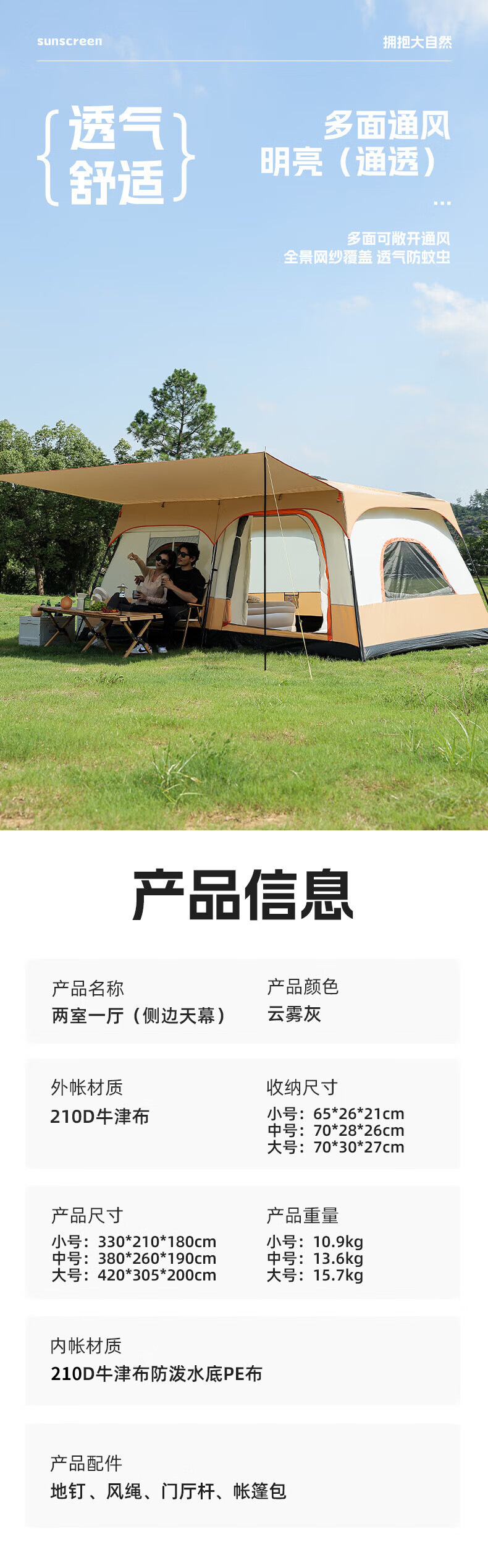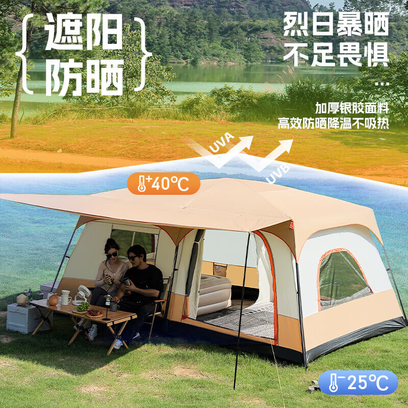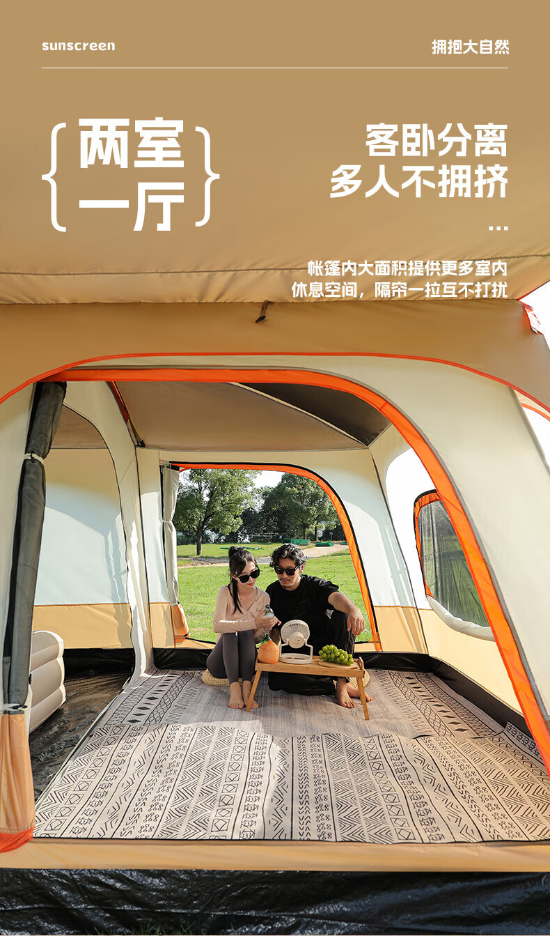 야외용 2룸 1리빙룸 텐트 캠핑 대형 텐트 5-8인용 10인용 방수 자외선 차단 휴대용 대형 현관 텐트