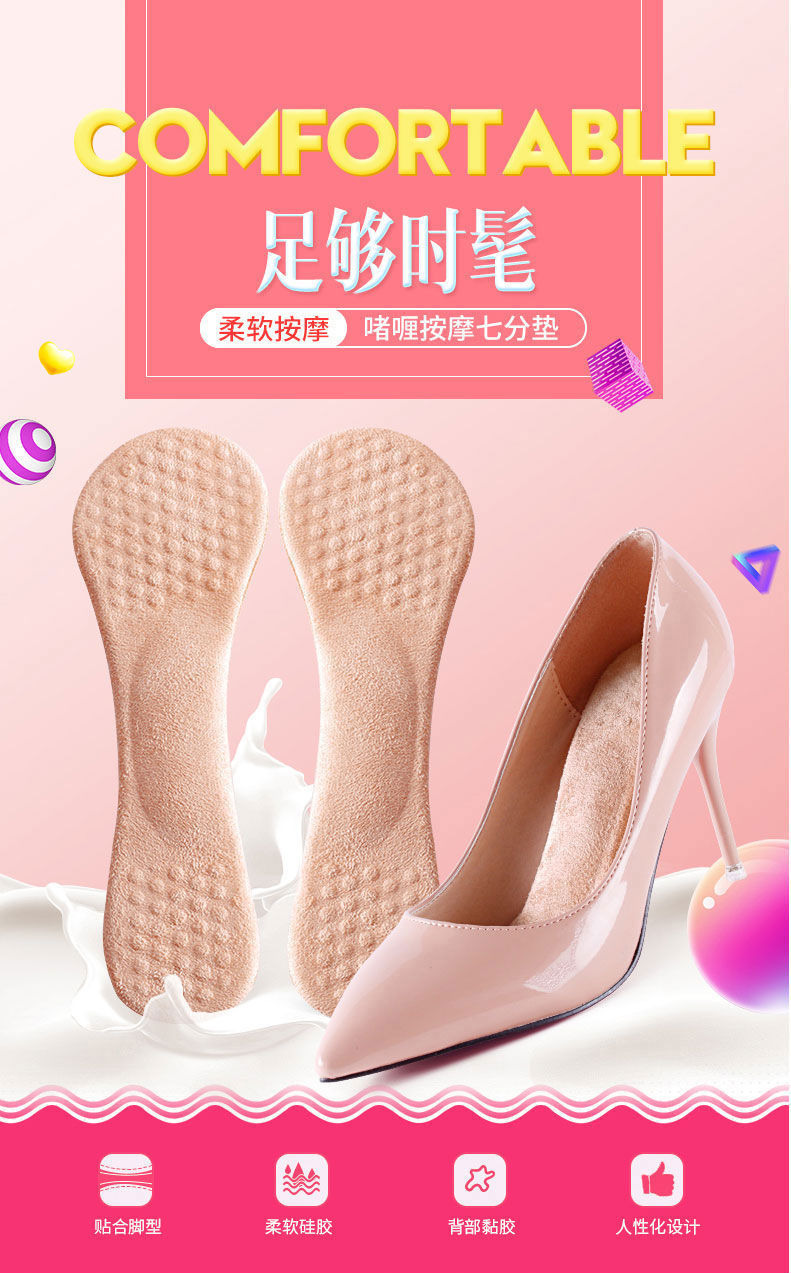 실리콘 미끄럼 방지 샌들 깔창, 자가 접착, 땀 흡수, 여성용 하이힐, 입자형 신발 땀 흡수 반패드, 7부 패드, 키높이 효과스토어 가기
