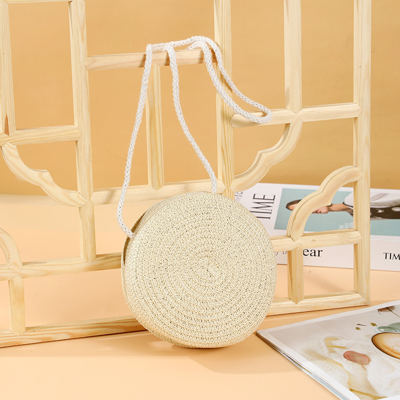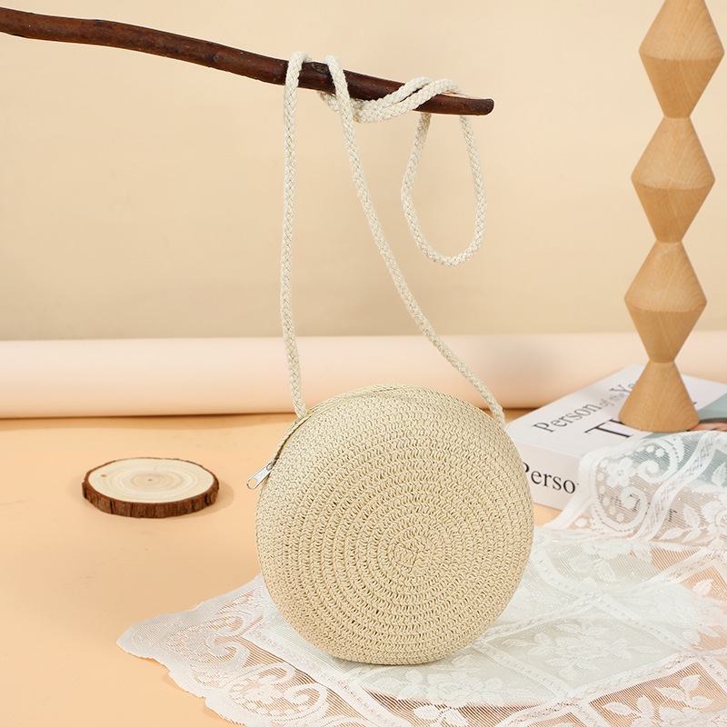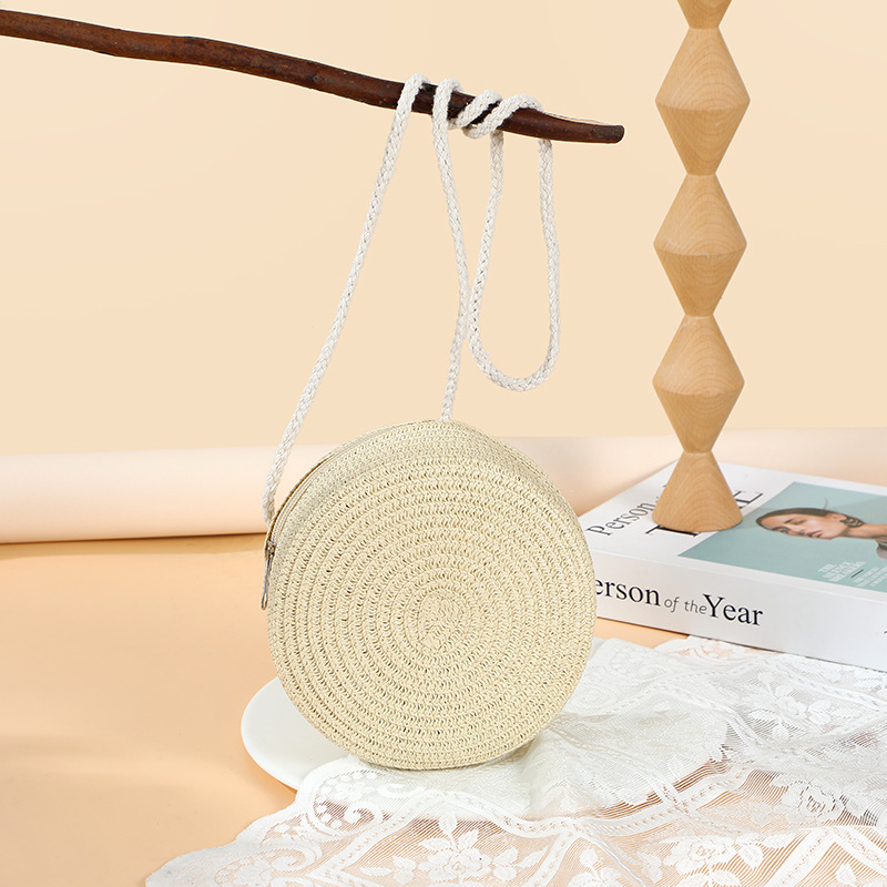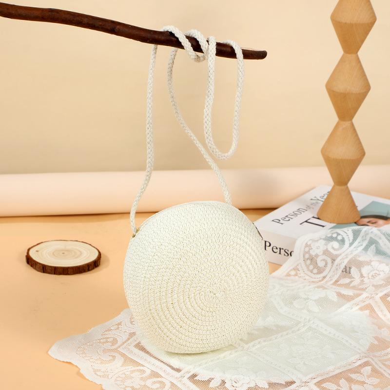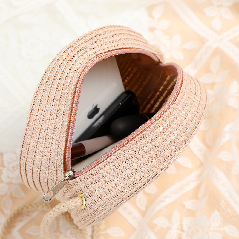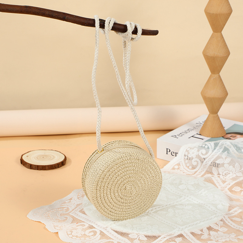 여름 귀여운 대형 밀짚 가방 여성용 2025 새로운 스타일 해변 밀짚 작은 원형 가방 휴대 전화 가방 크로스 바디스토어 가기