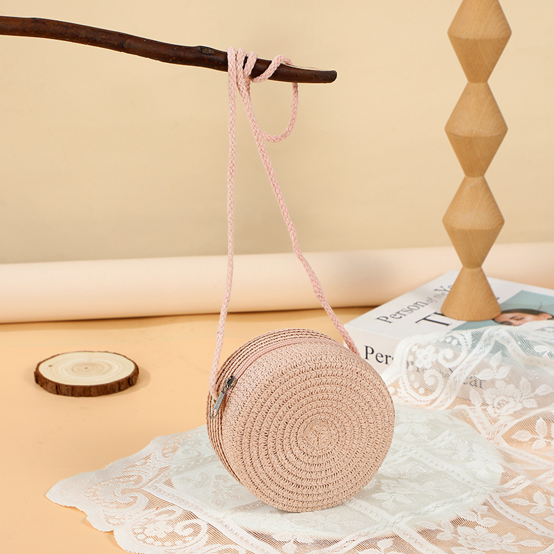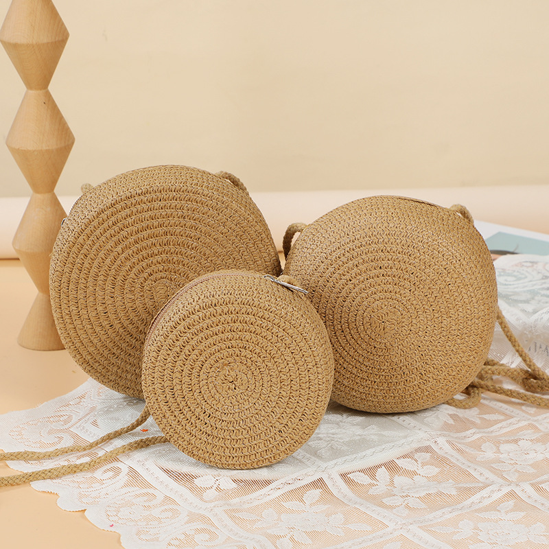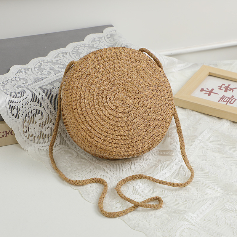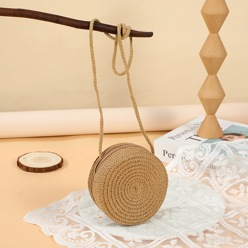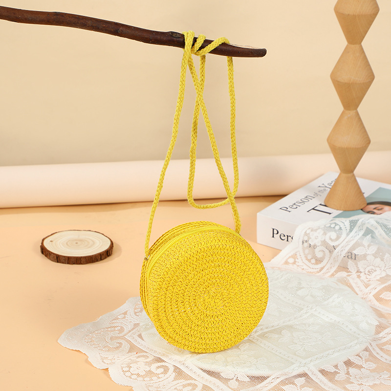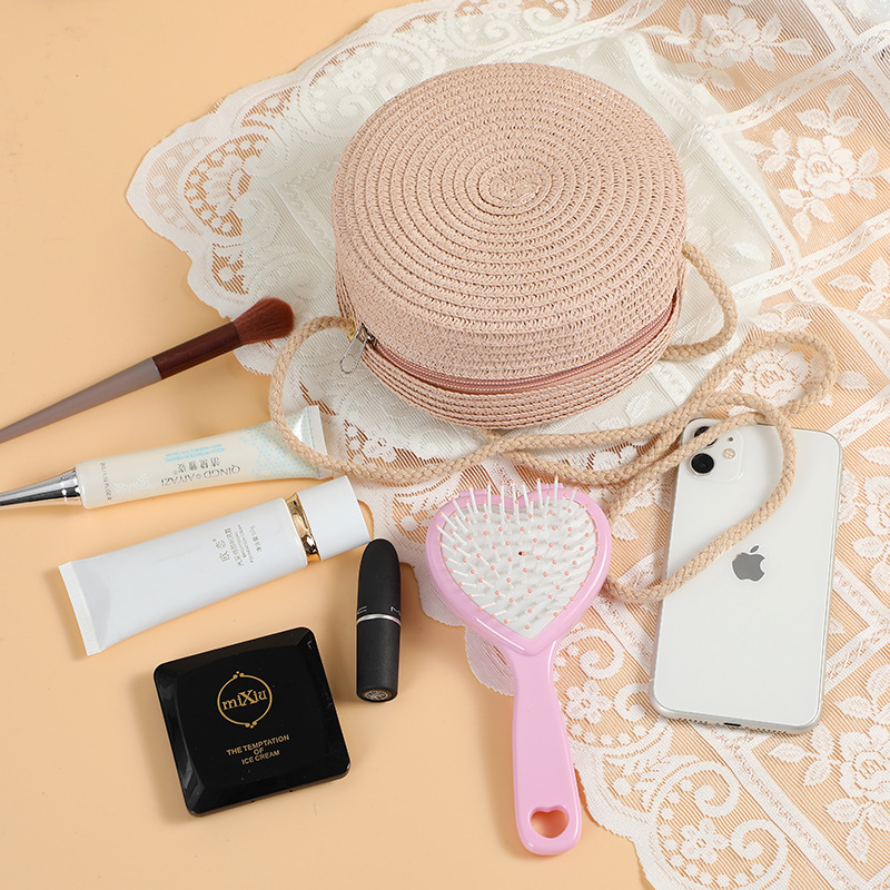 여름 귀여운 대형 밀짚 가방 여성용 2025 새로운 스타일 해변 밀짚 작은 원형 가방 휴대 전화 가방 크로스 바디