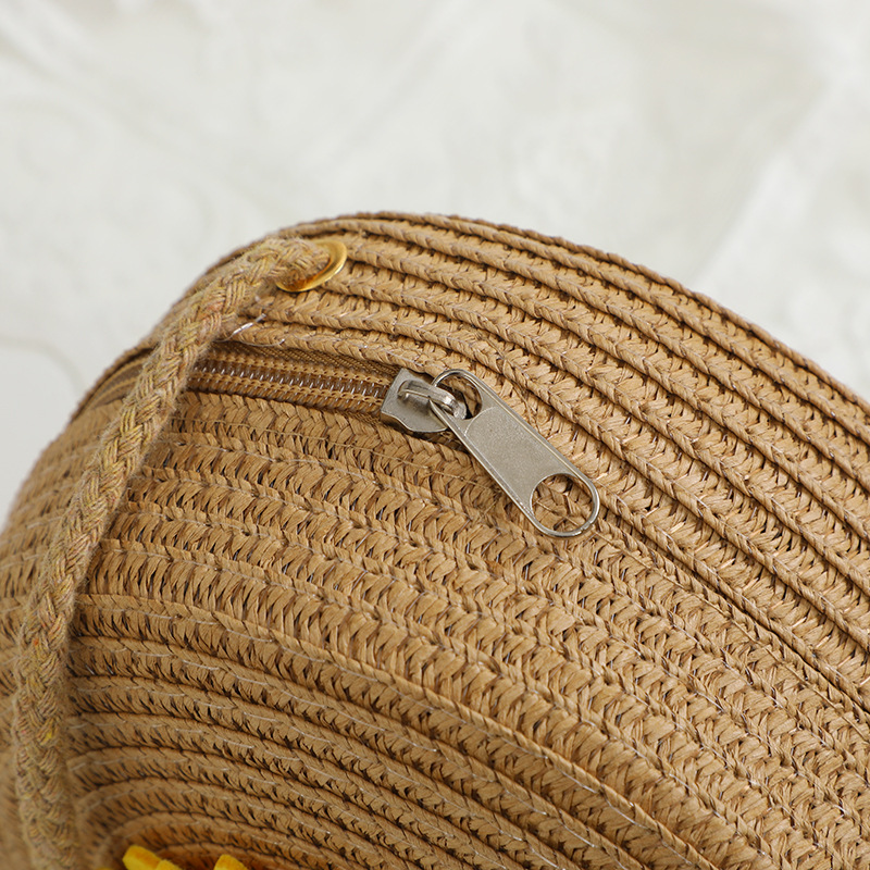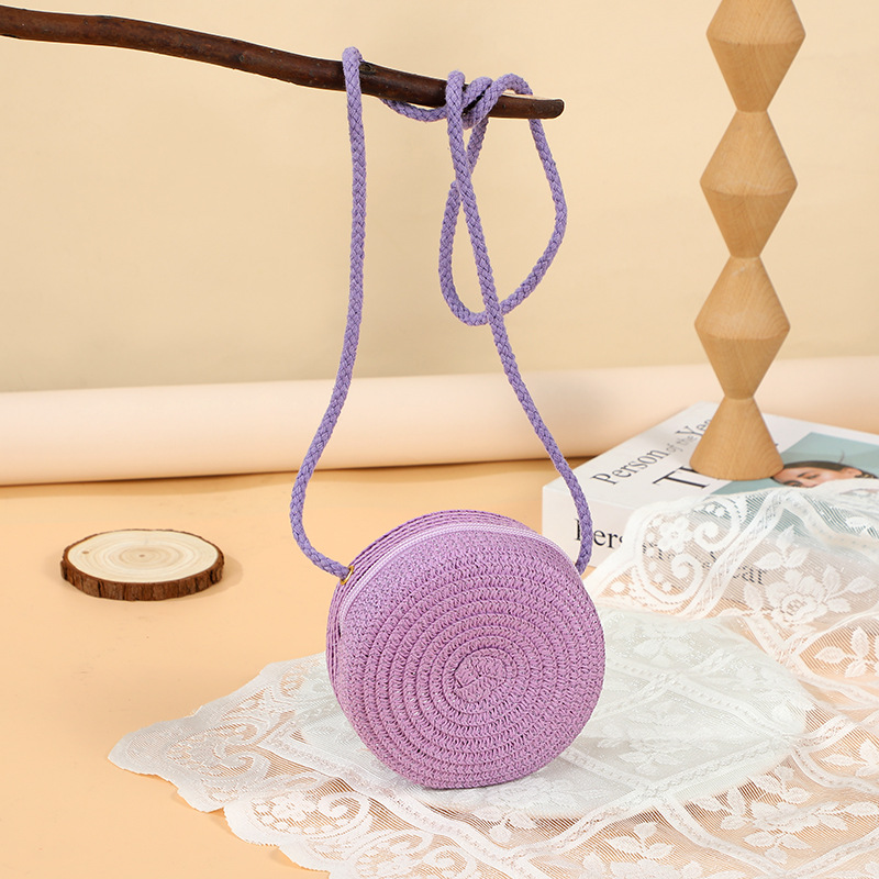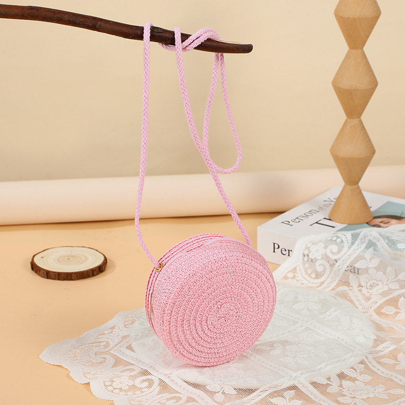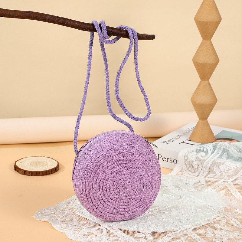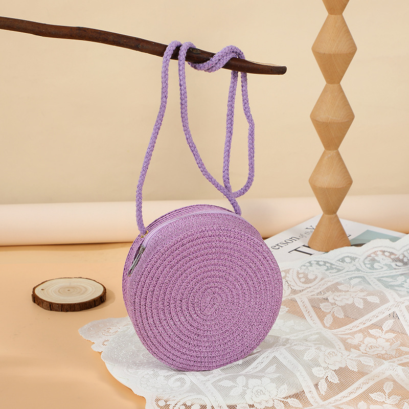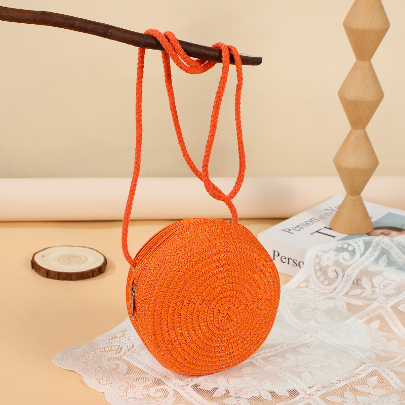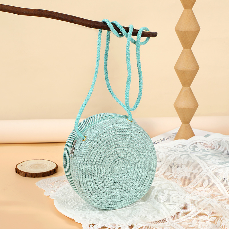 여름 귀여운 대형 밀짚 가방 여성용 2025 새로운 스타일 해변 밀짚 작은 원형 가방 휴대 전화 가방 크로스 바디