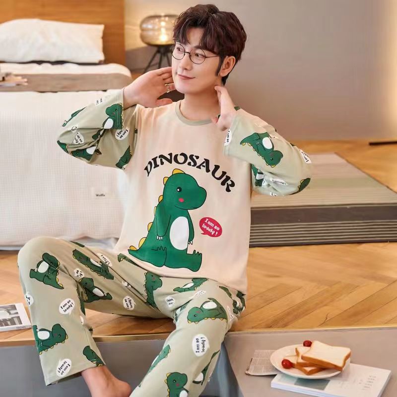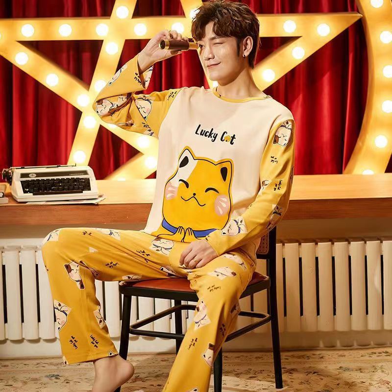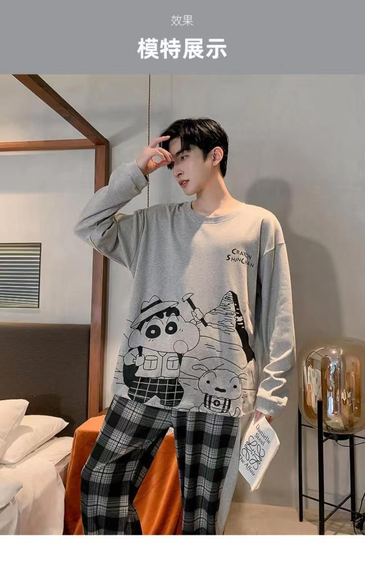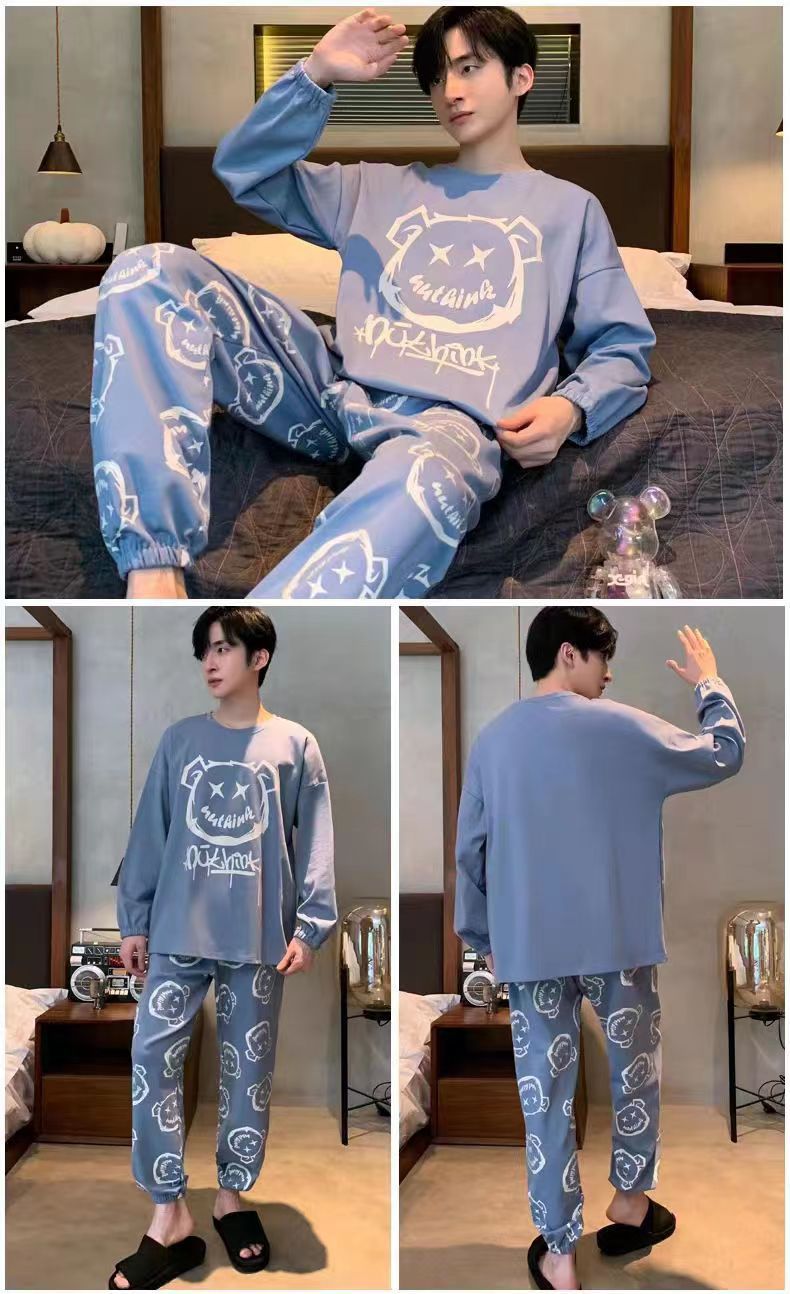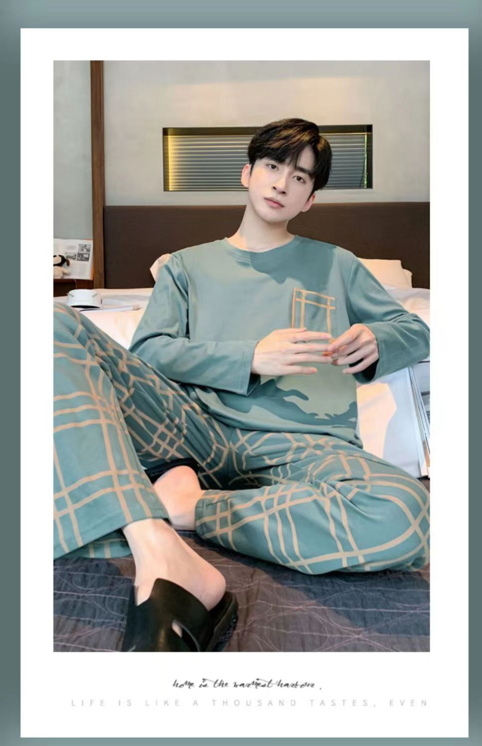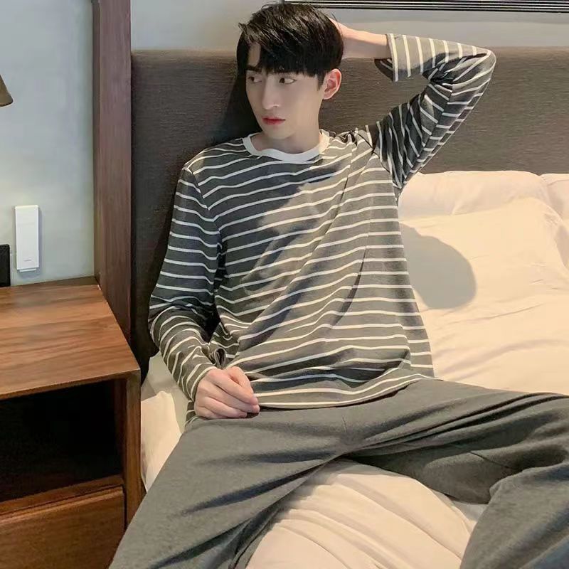 잠옷 남자 긴팔 바지 봄 가을 간단한 캐주얼 젊은 남자의 겨울 집 옷 세트 외장 착용스토어 가기