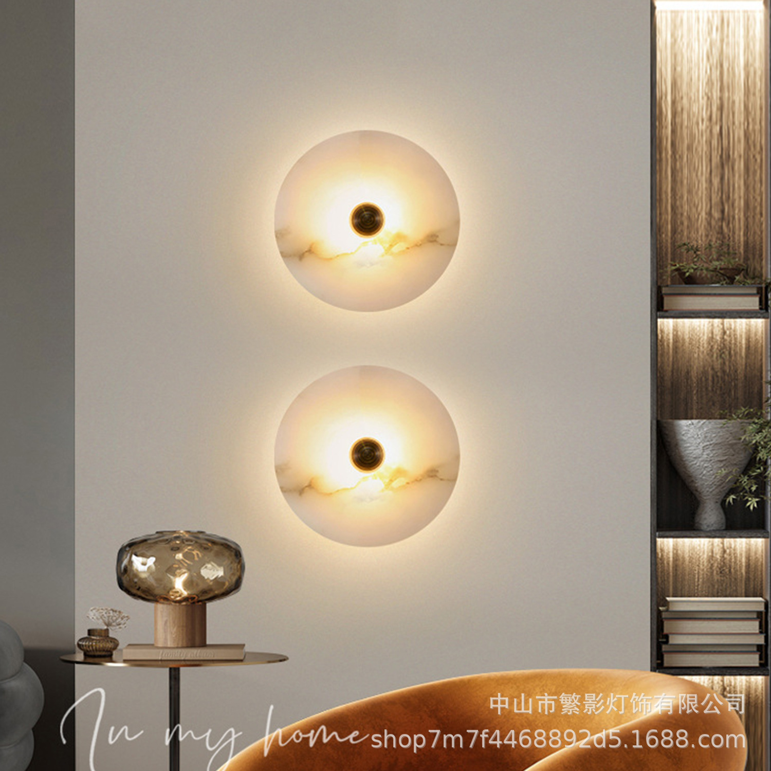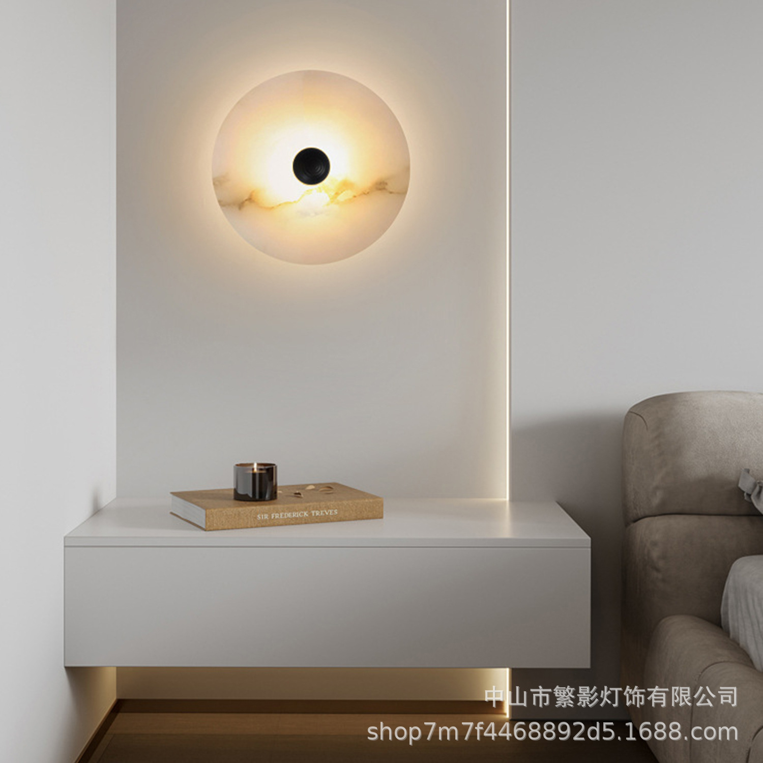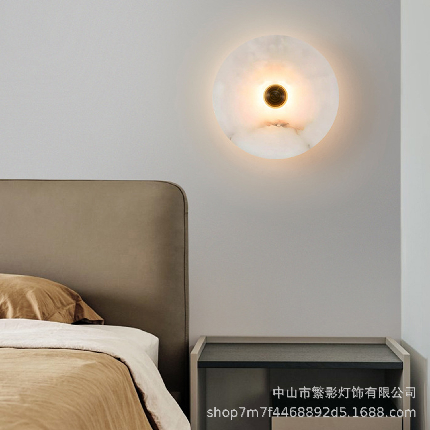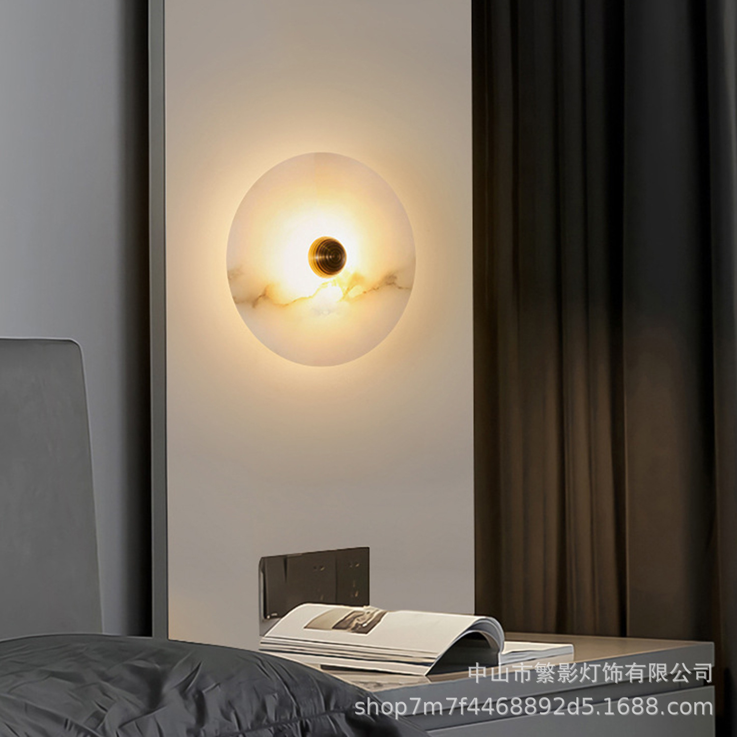 북유럽 빛 럭셔리 천연 대리석 침실 침실 벽 램프 현대 거실 간단한 디자인 라운드 스톤 벽 램프스토어 가기