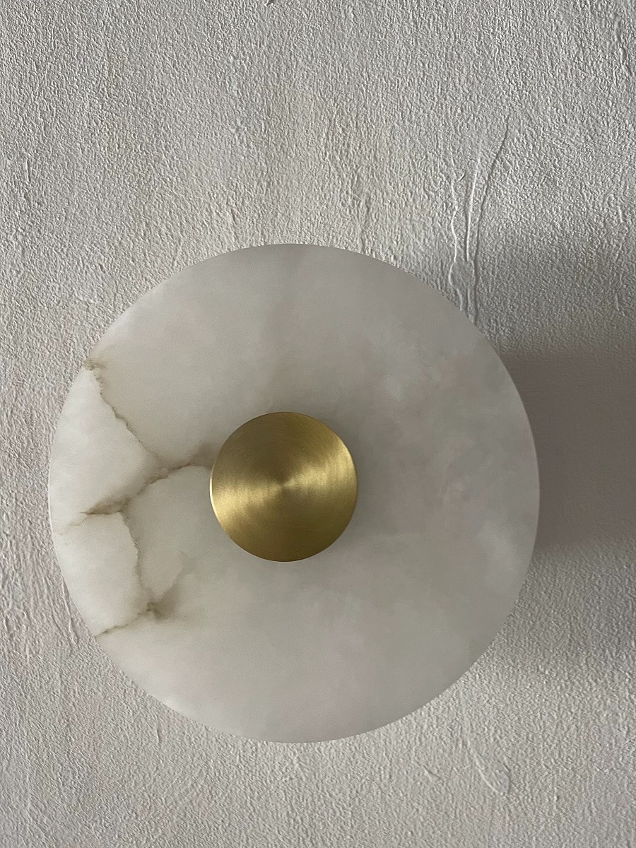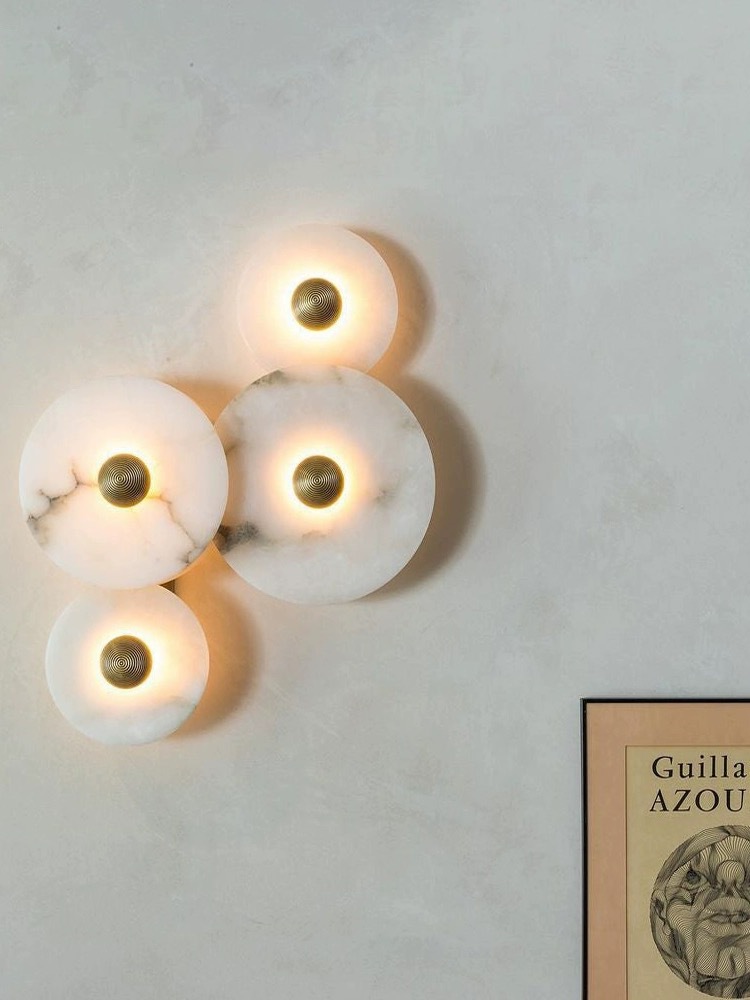 북유럽 빛 럭셔리 천연 대리석 침실 침실 벽 램프 현대 거실 간단한 디자인 라운드 스톤 벽 램프