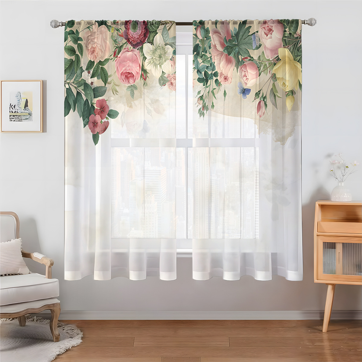 2pcs 동물 및 식물 제조 업체 공급 국경 아마존 3D 디지털 인쇄 패브릭 커튼 스크린