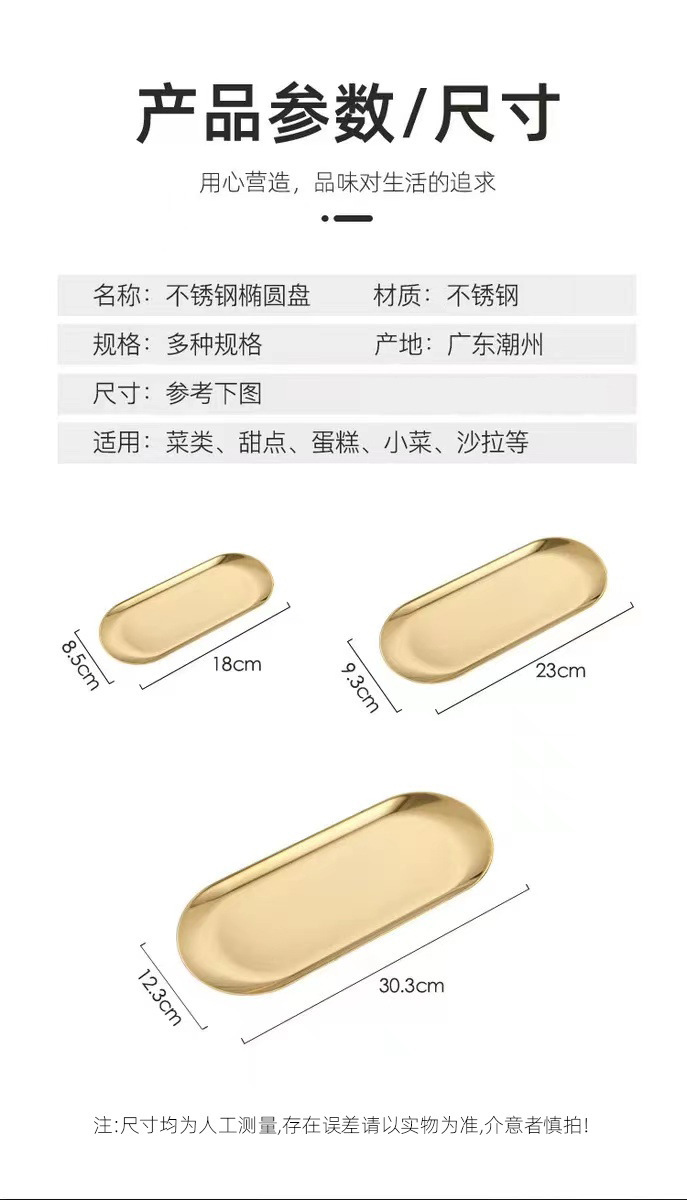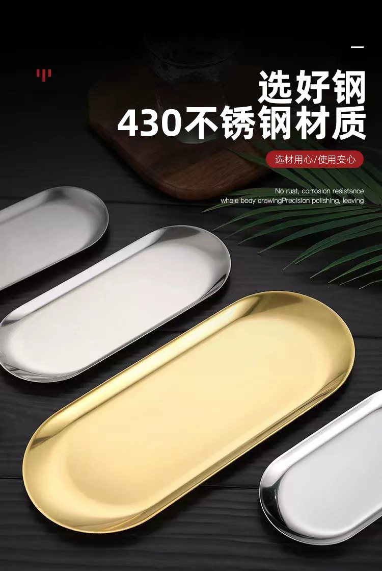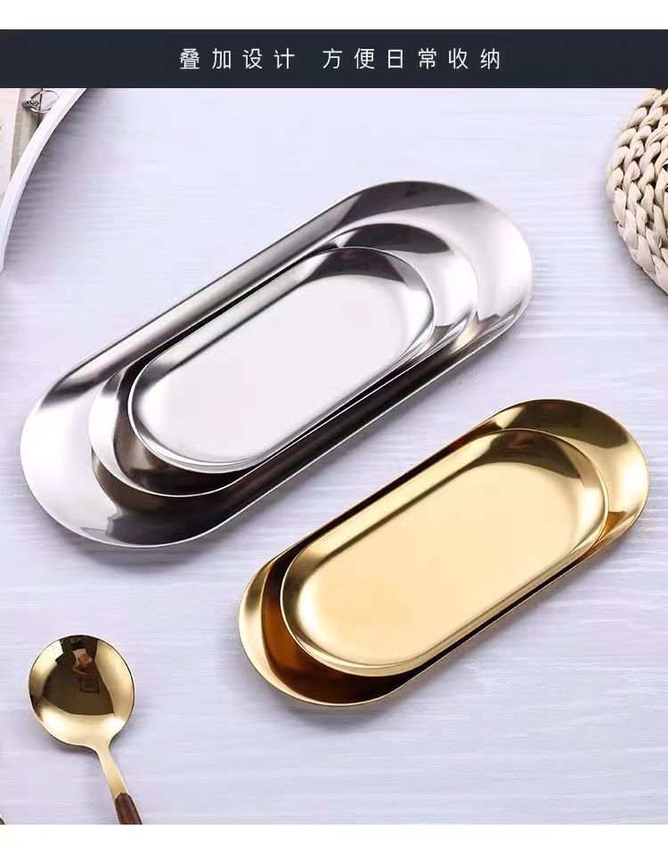 국경 간 타원형 트레이 고급 Ins 스타일 스테인레스 스틸 플레이트 웨스턴 딤섬 공예 장식품 보석 보관판
