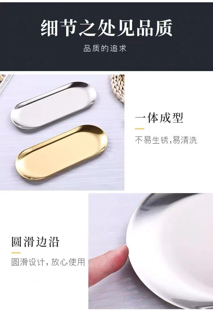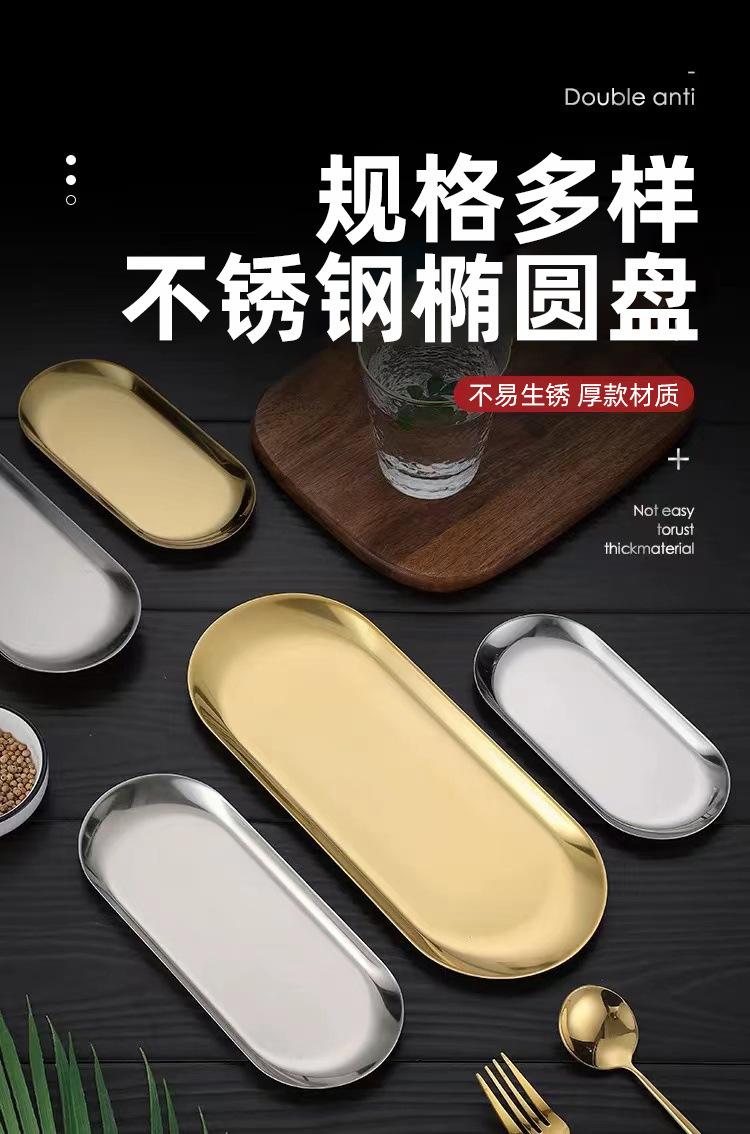 국경 간 타원형 트레이 고급 Ins 스타일 스테인레스 스틸 플레이트 웨스턴 딤섬 공예 장식품 보석 보관판스토어 가기
