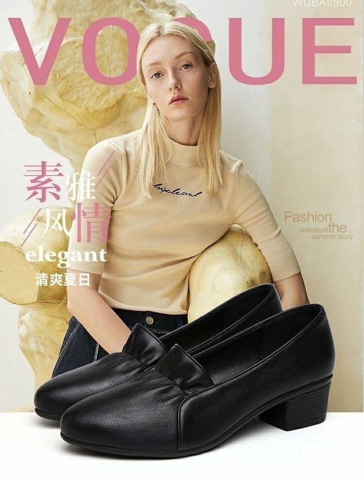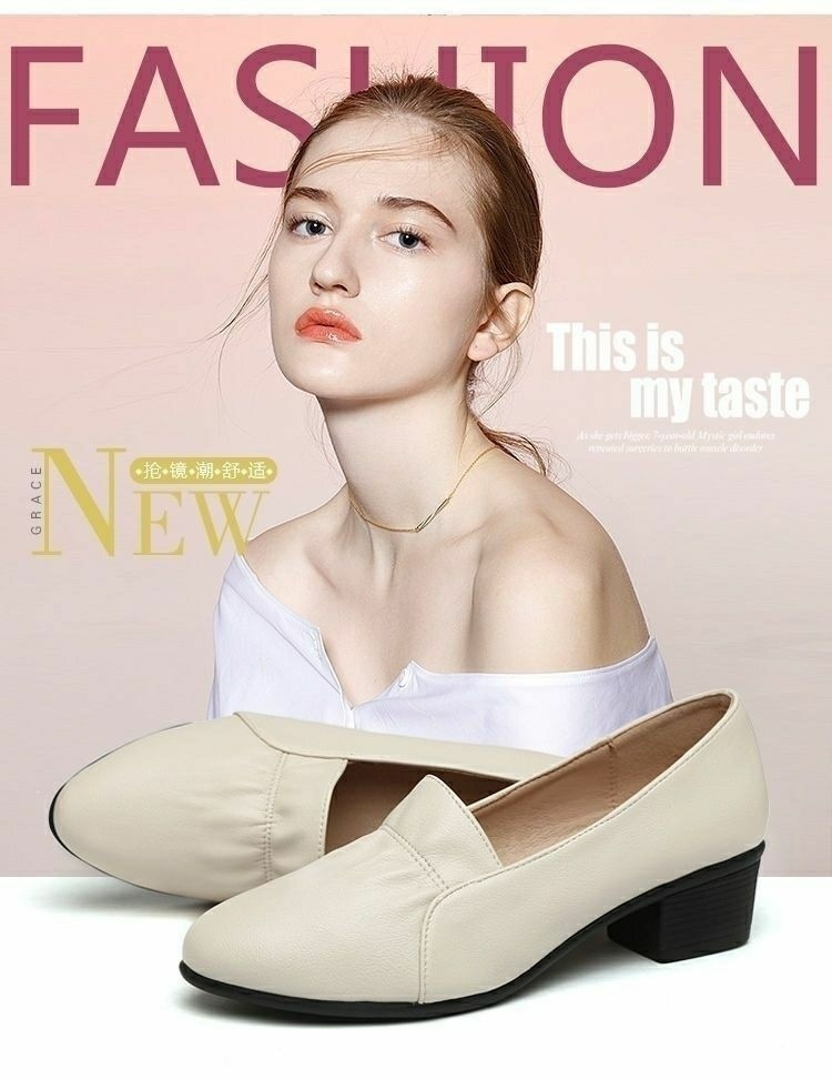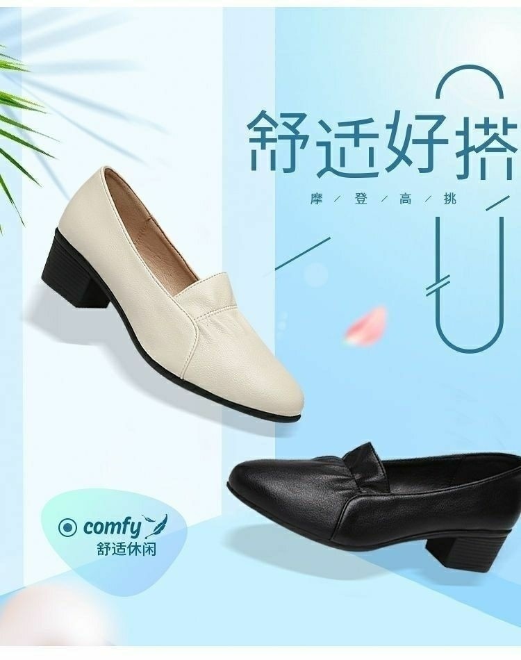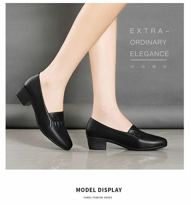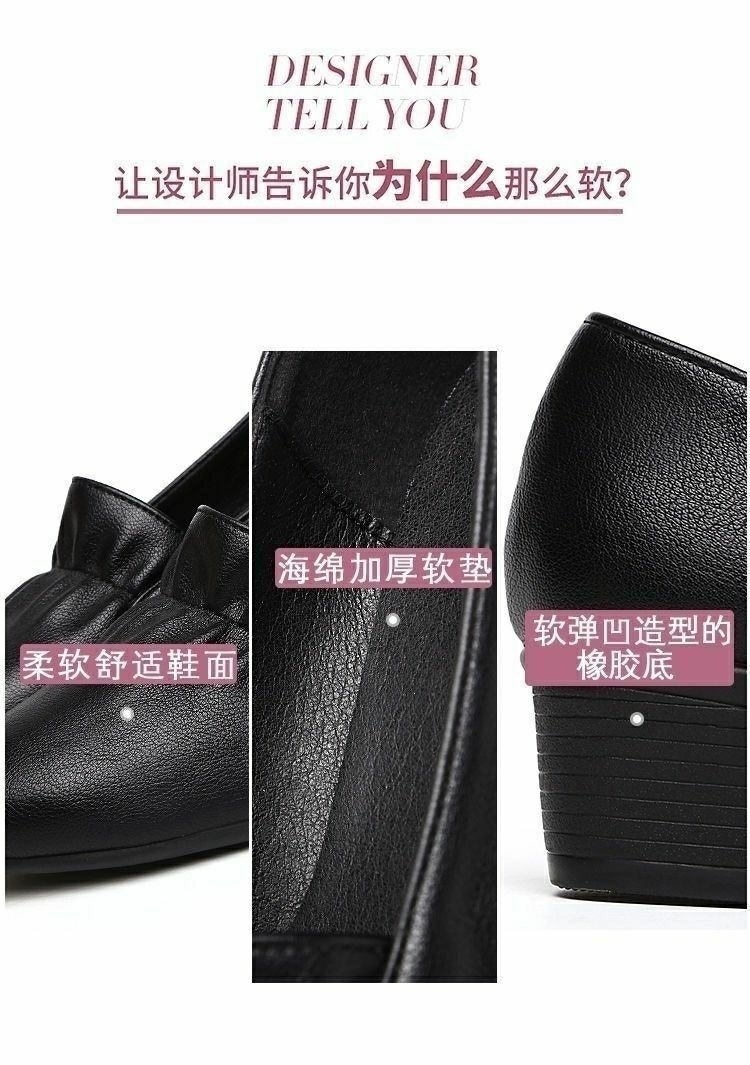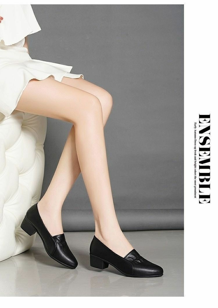 진북강 리얼 소프트 가죽 소프트 단독 여성 유행 어머니 봄 여름 청키 힐 싱글 레이어 신발 작업 신발 편안한 올 매치 소프트 솔