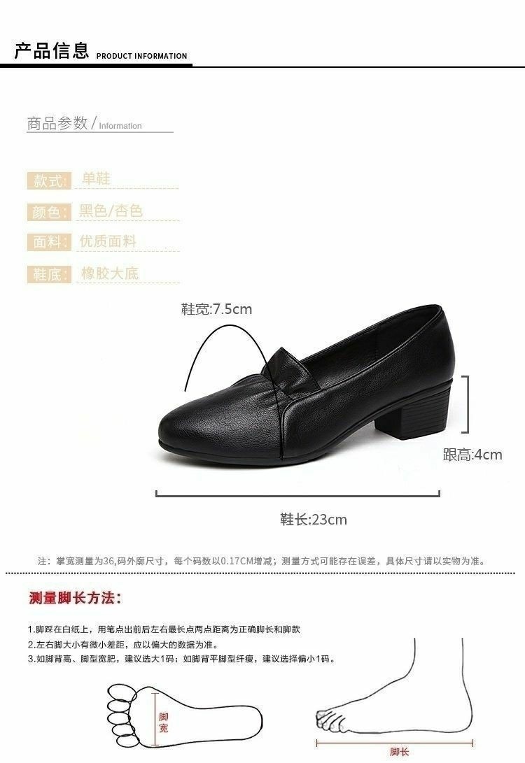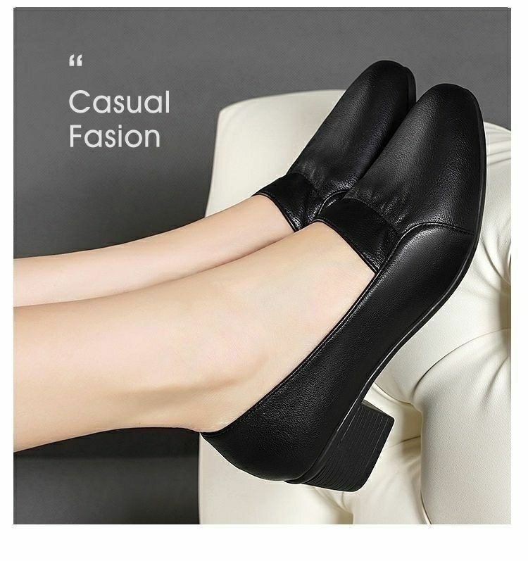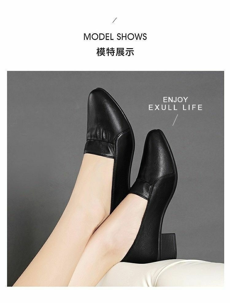 진북강 리얼 소프트 가죽 소프트 단독 여성 유행 어머니 봄 여름 청키 힐 싱글 레이어 신발 작업 신발 편안한 올 매치 소프트 솔스토어 가기