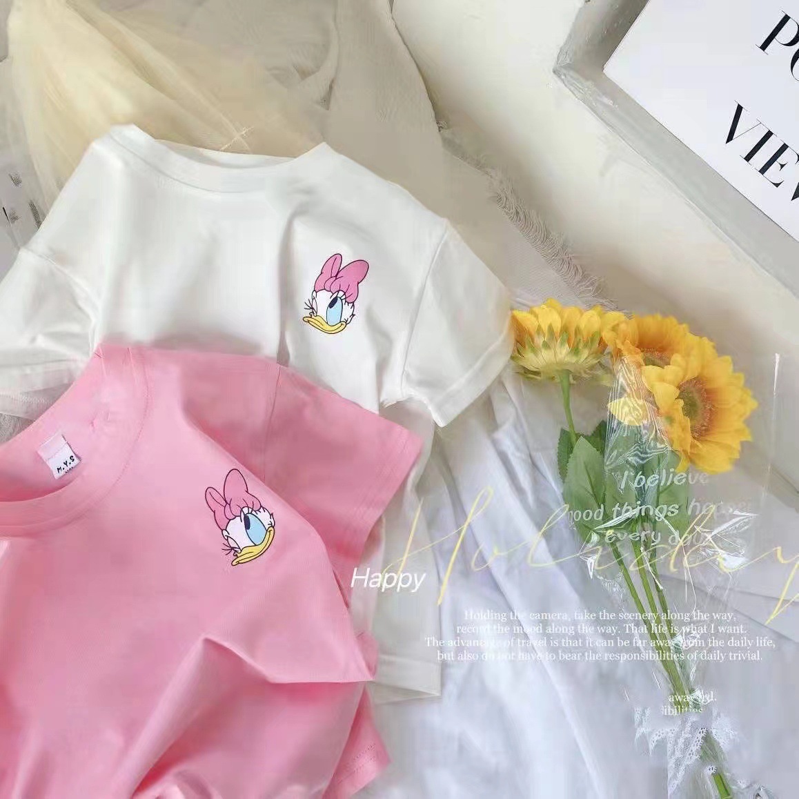 새로운 코튼 걸스 반팔 티셔츠 여름 서양식 만화 캐주얼 인쇄 느슨한 중소 어린이 탑베이스 셔츠 T스토어 가기