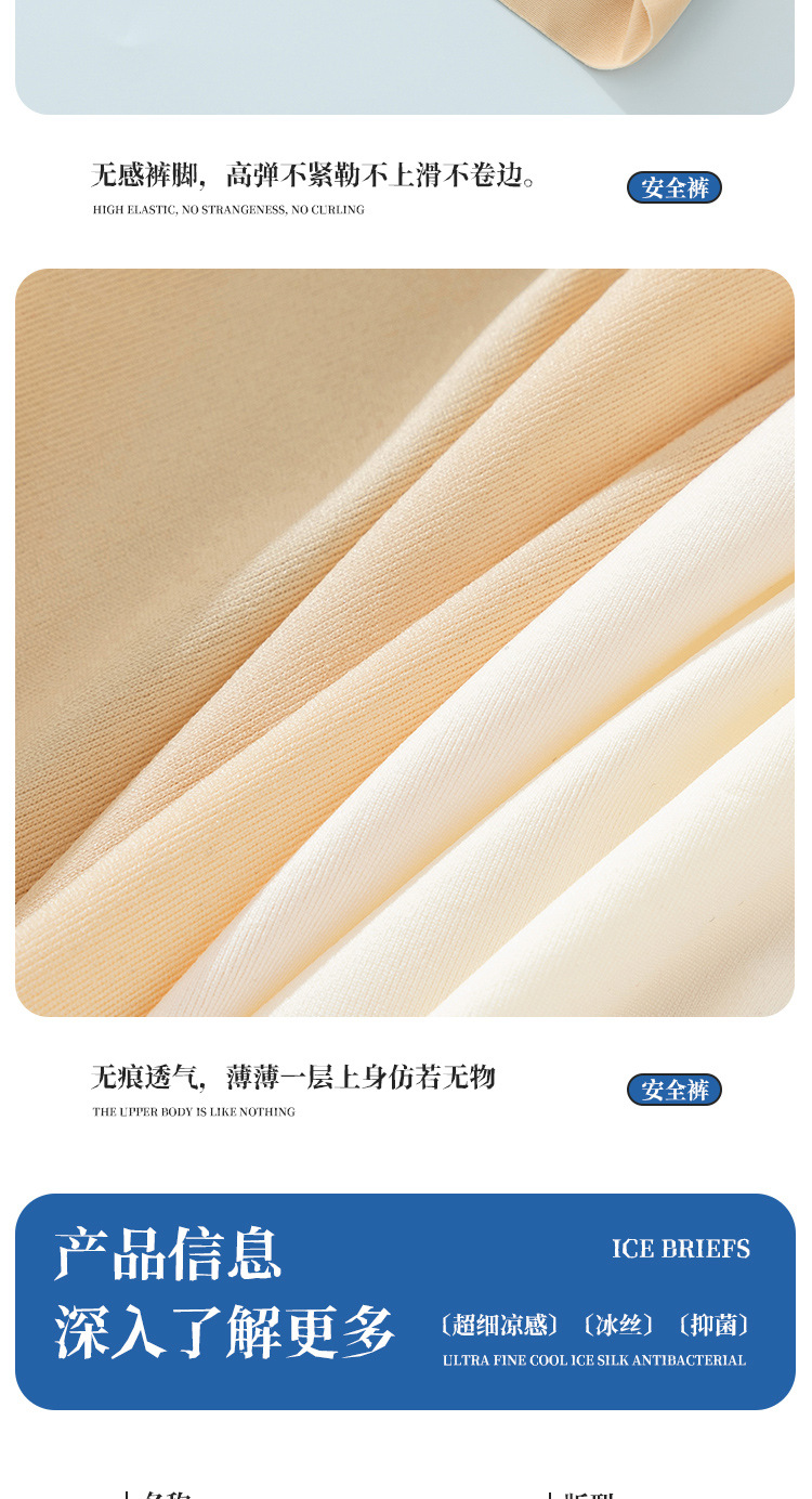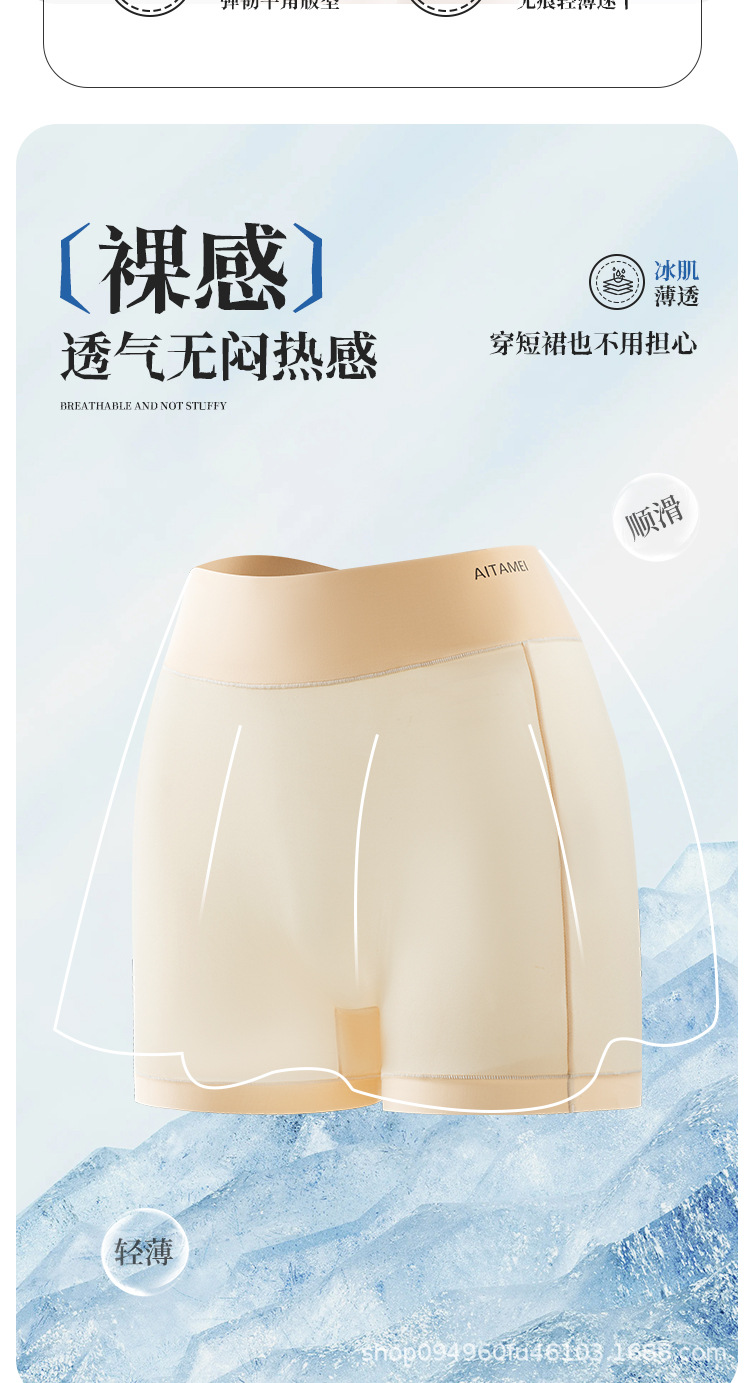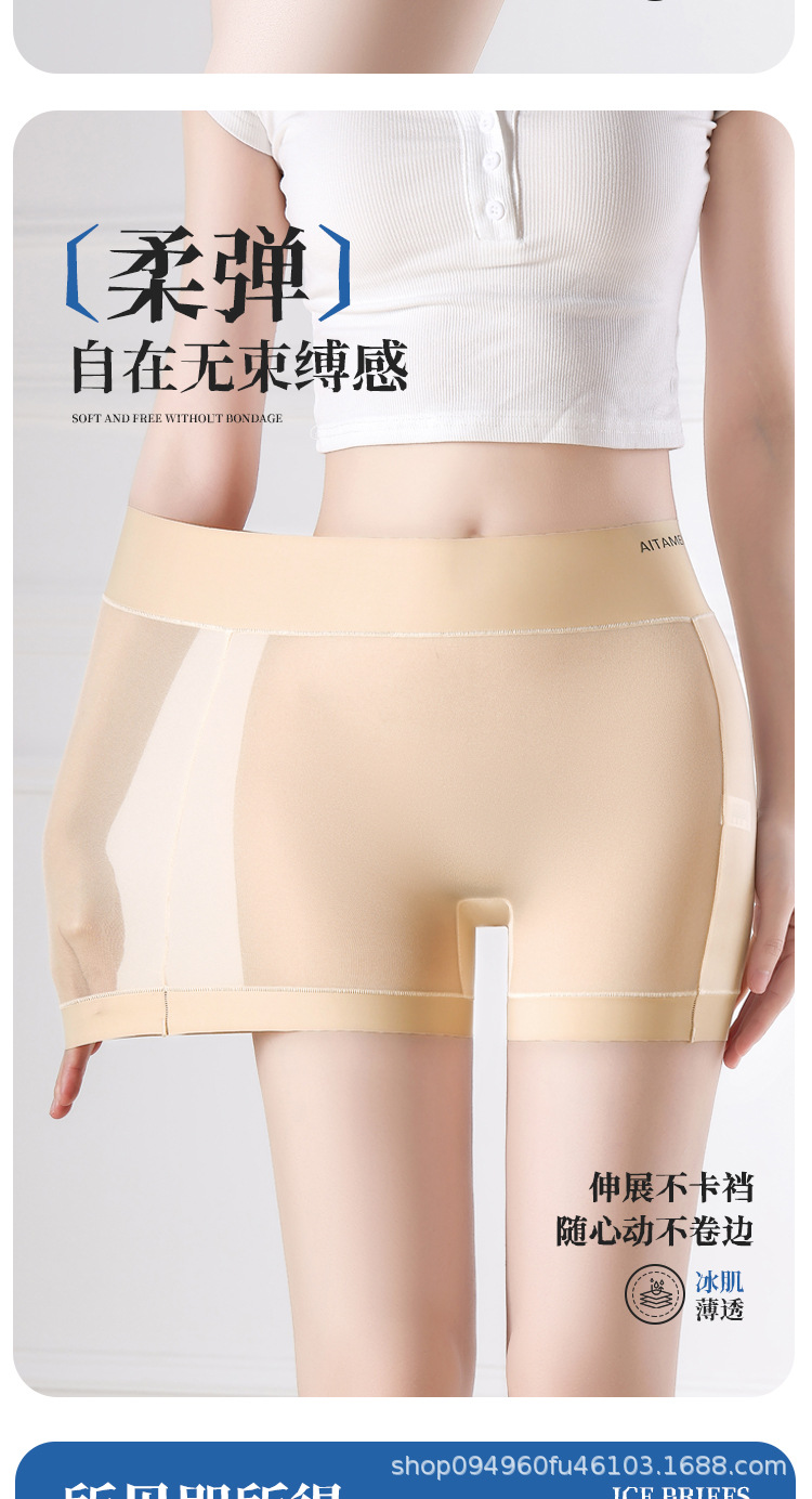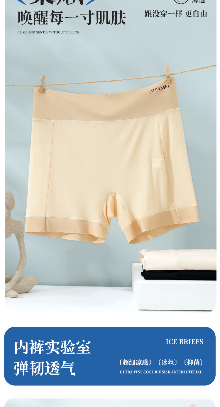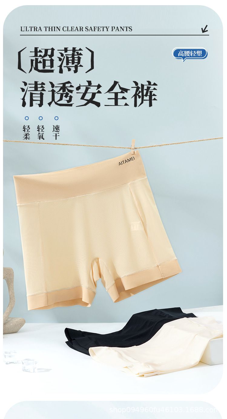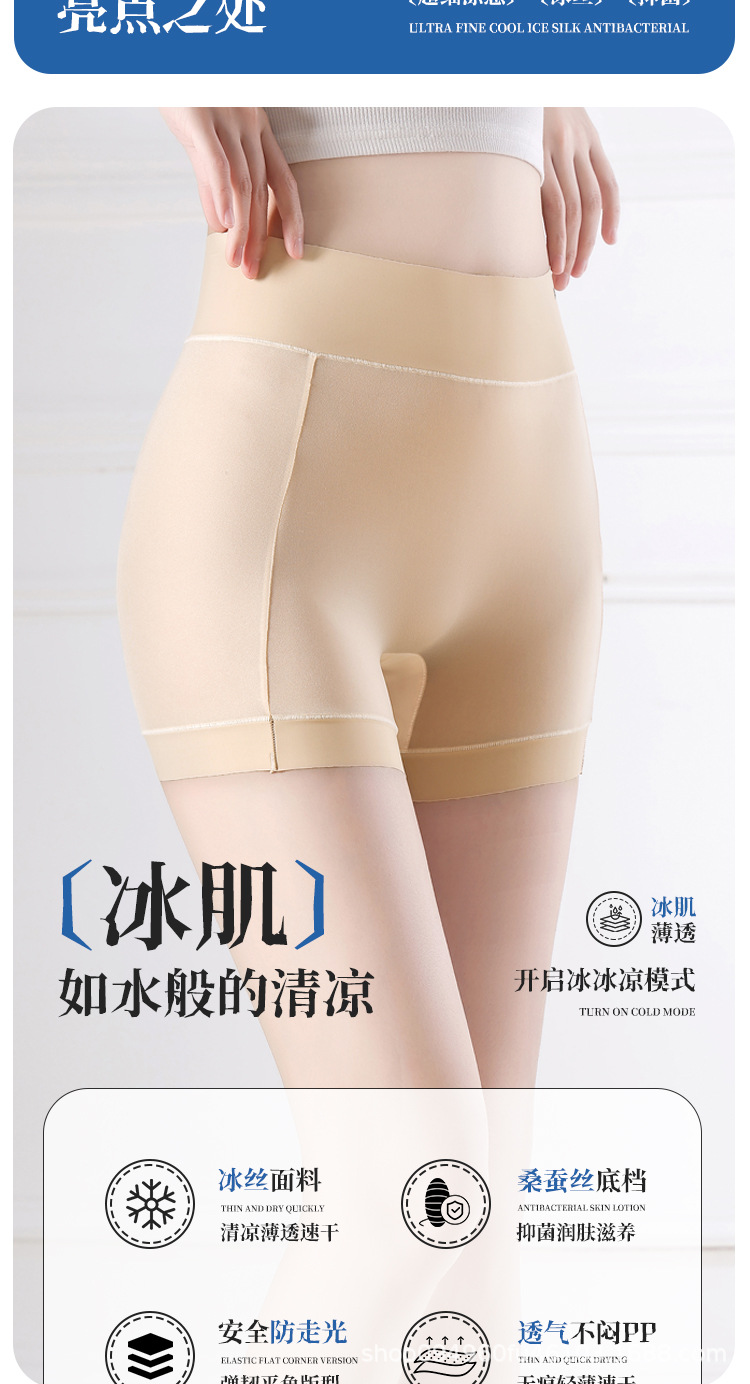여성용 초박형 아이스 실크 시원한 느낌의 하이웨이스트 심리스 속옷, 대형 사이즈, 편안하고 통기성이 있으며 컬링되지 않으며 노출 방지 안전 바지