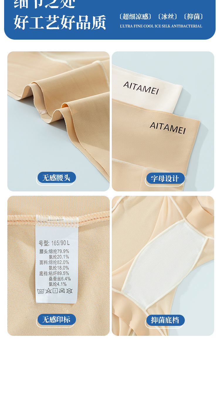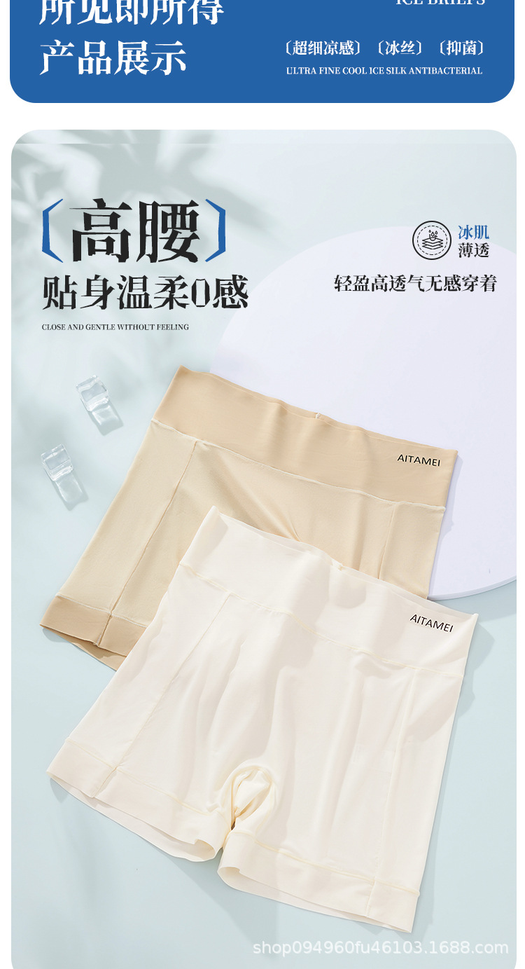 여성용 초박형 아이스 실크 시원한 느낌의 하이웨이스트 심리스 속옷, 대형 사이즈, 편안하고 통기성이 있으며 컬링되지 않으며 노출 방지 안전 바지스토어 가기