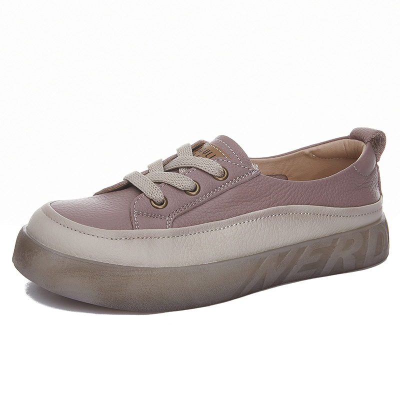 2025년 신상 봄/여름 1등급 소가죽 얕은 굽 여성용 레트로 캐주얼 두꺼운 밑창 젤리 밑창 레이지 슈즈