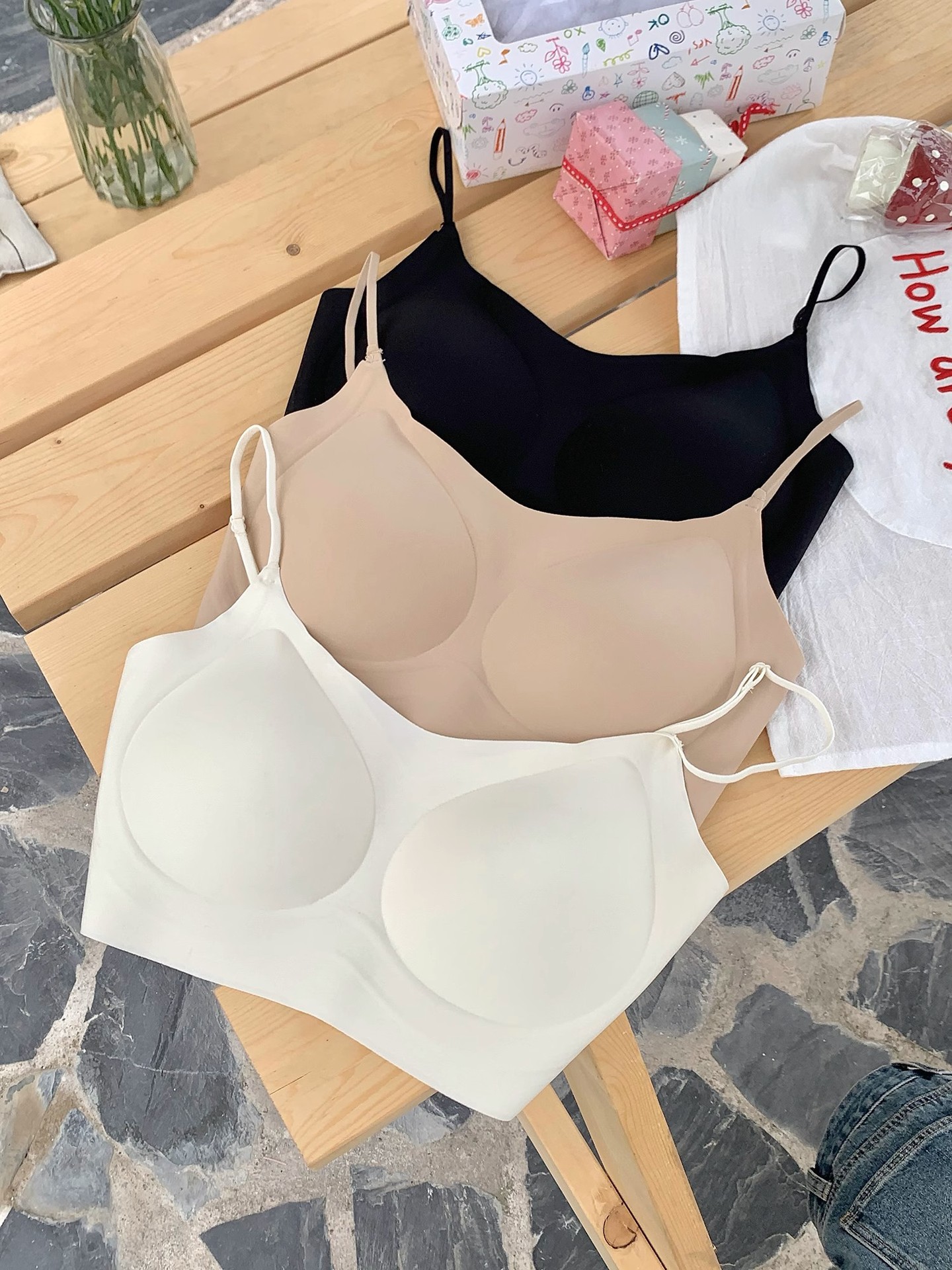 보이지 않는 원활한 액체 재단 속옷 여성의 흰색 T-어깨 스트랩 유방 처짐 방지 통기성 얇은 여름 브래지어