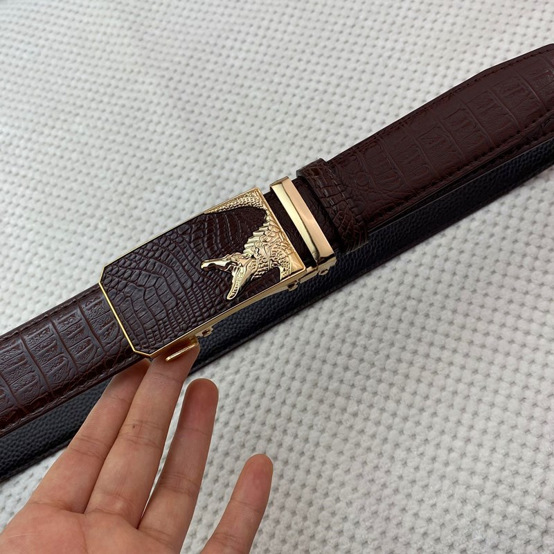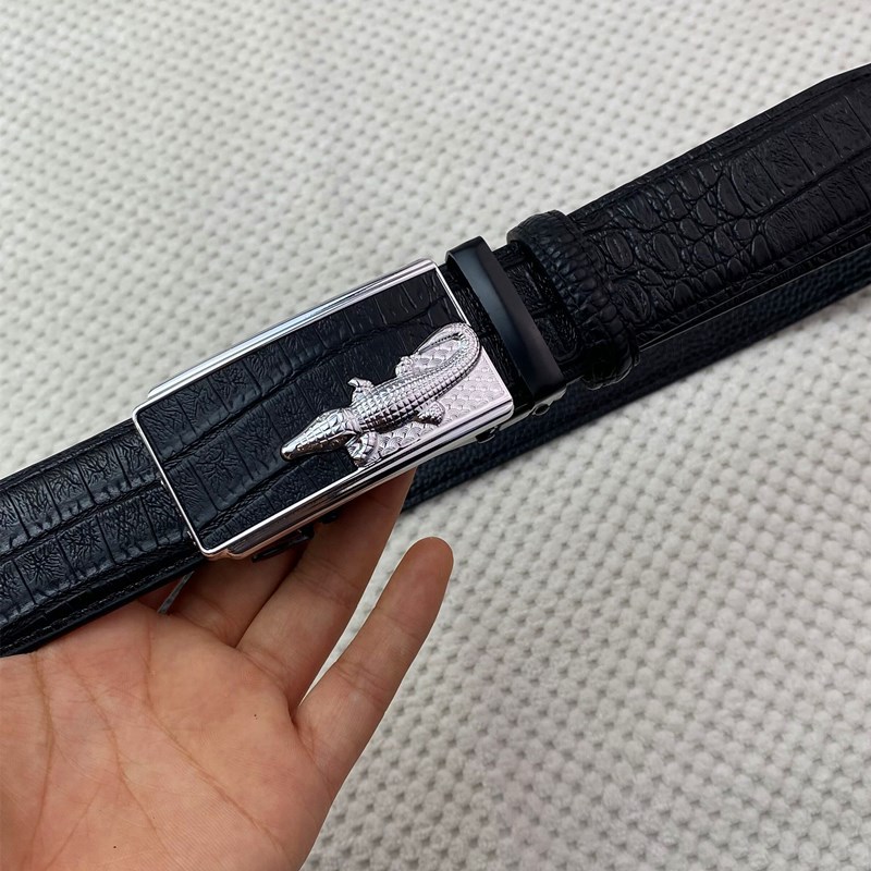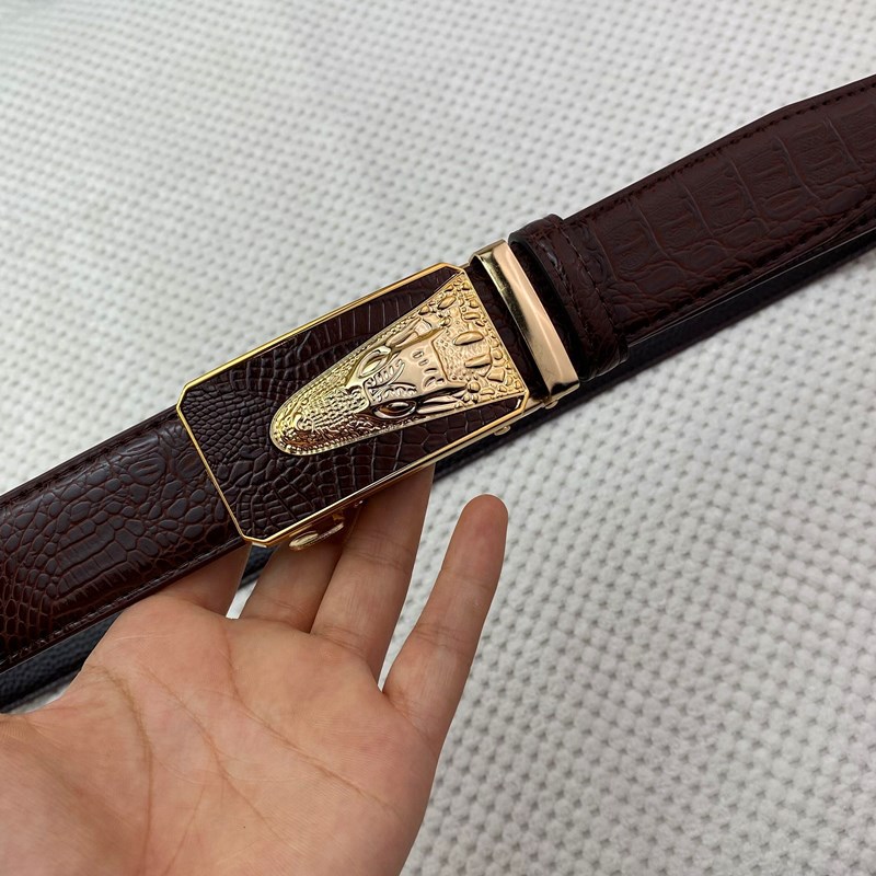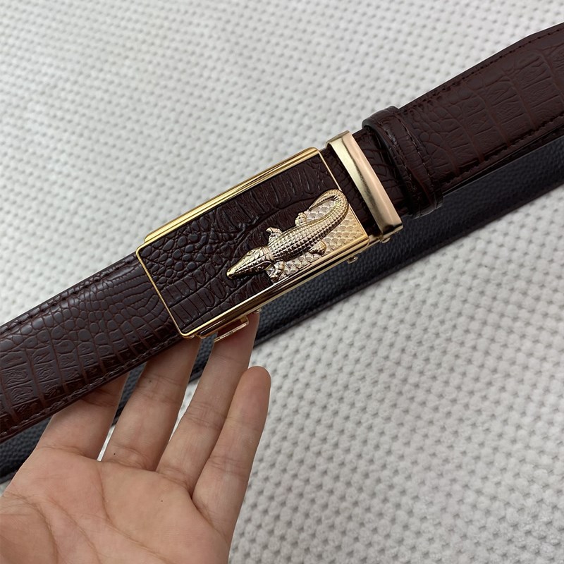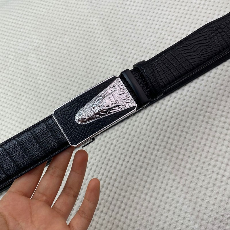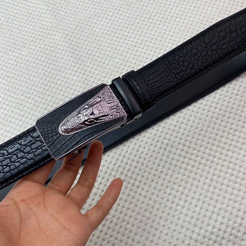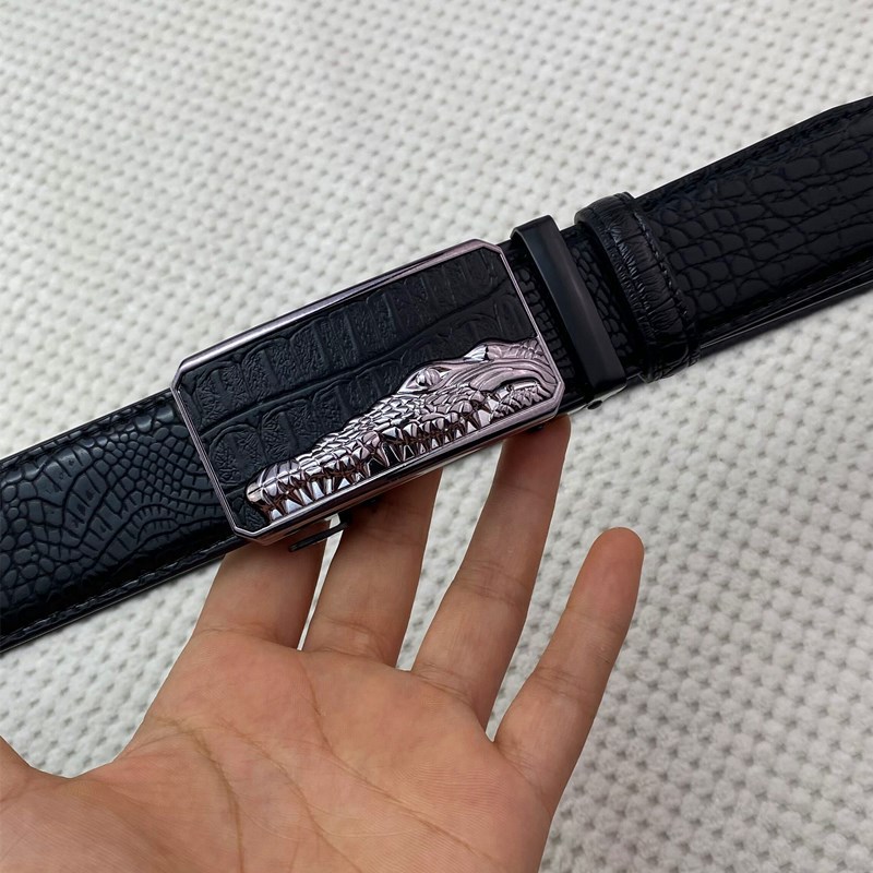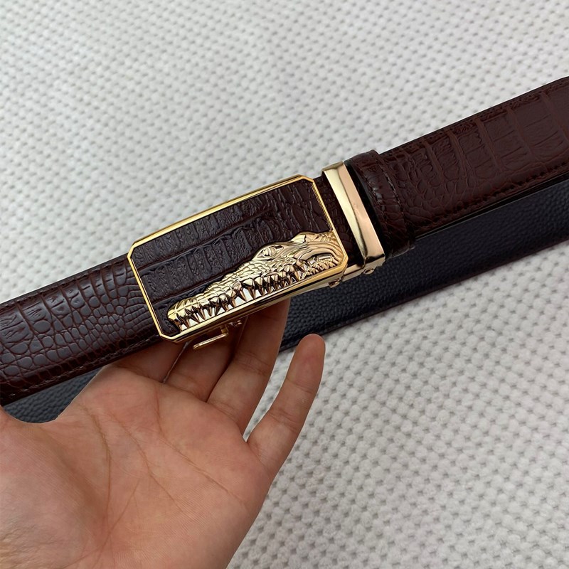 악어 패턴 남성 정품 가죽 카우보이 벨트 비즈니스 남성 가죽 자동 버클 바지 헤드 아이언 버클 재고 벨트스토어 가기